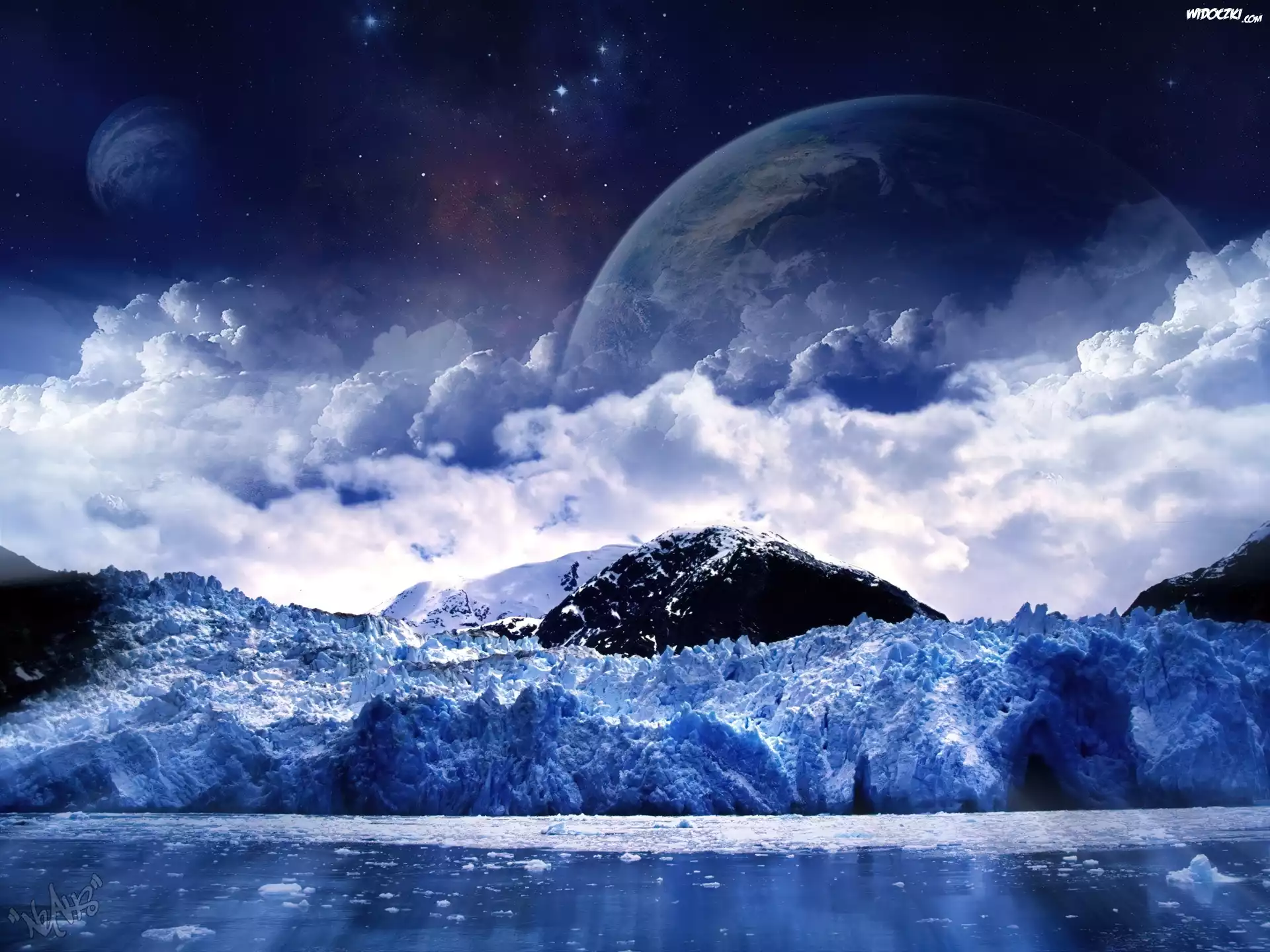 Zdjęcia, Chmury, Góry, Planeta, Śnieg, Zima