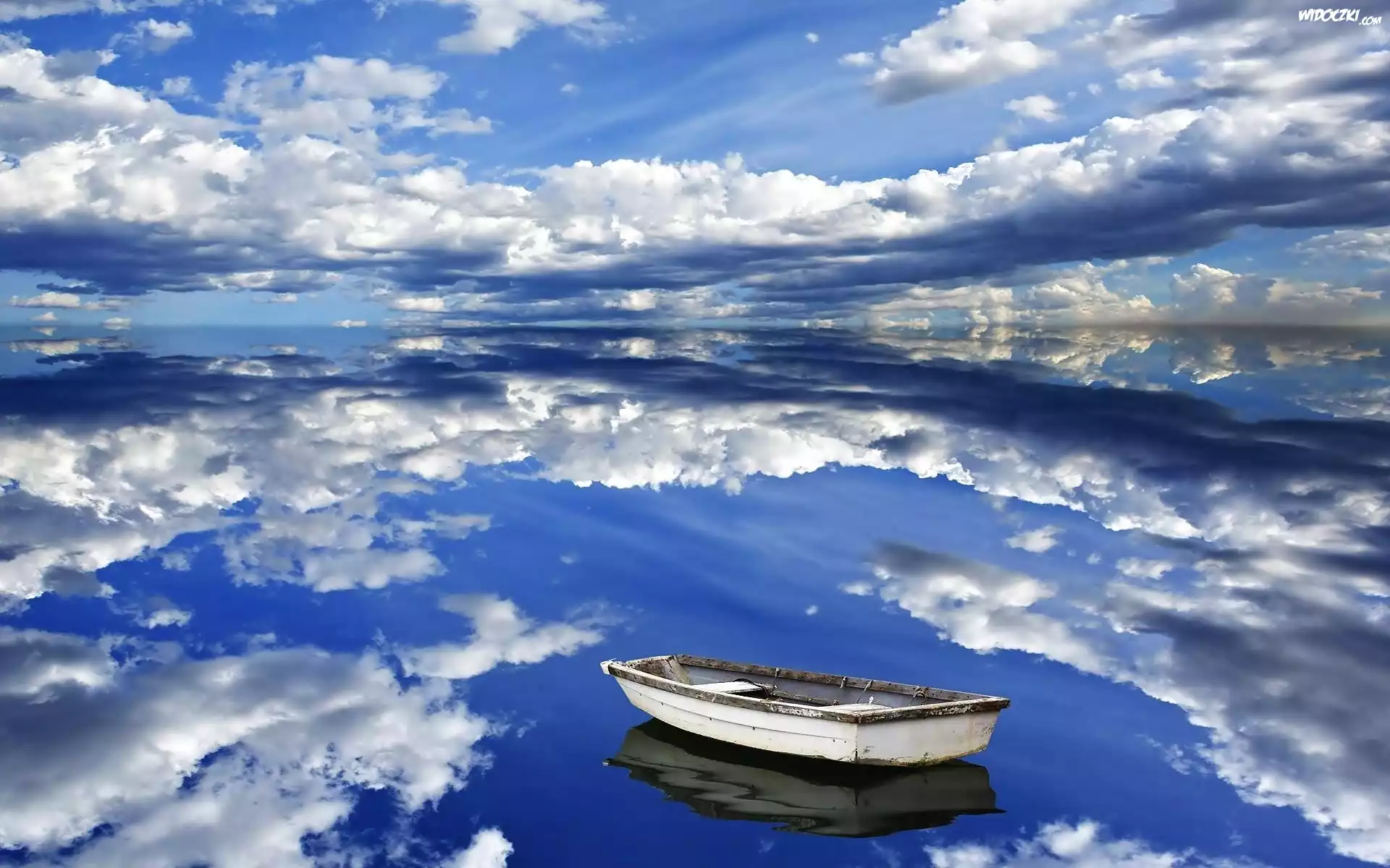 Chmury, Niebo, Jezioro, Łódka, Odbicie