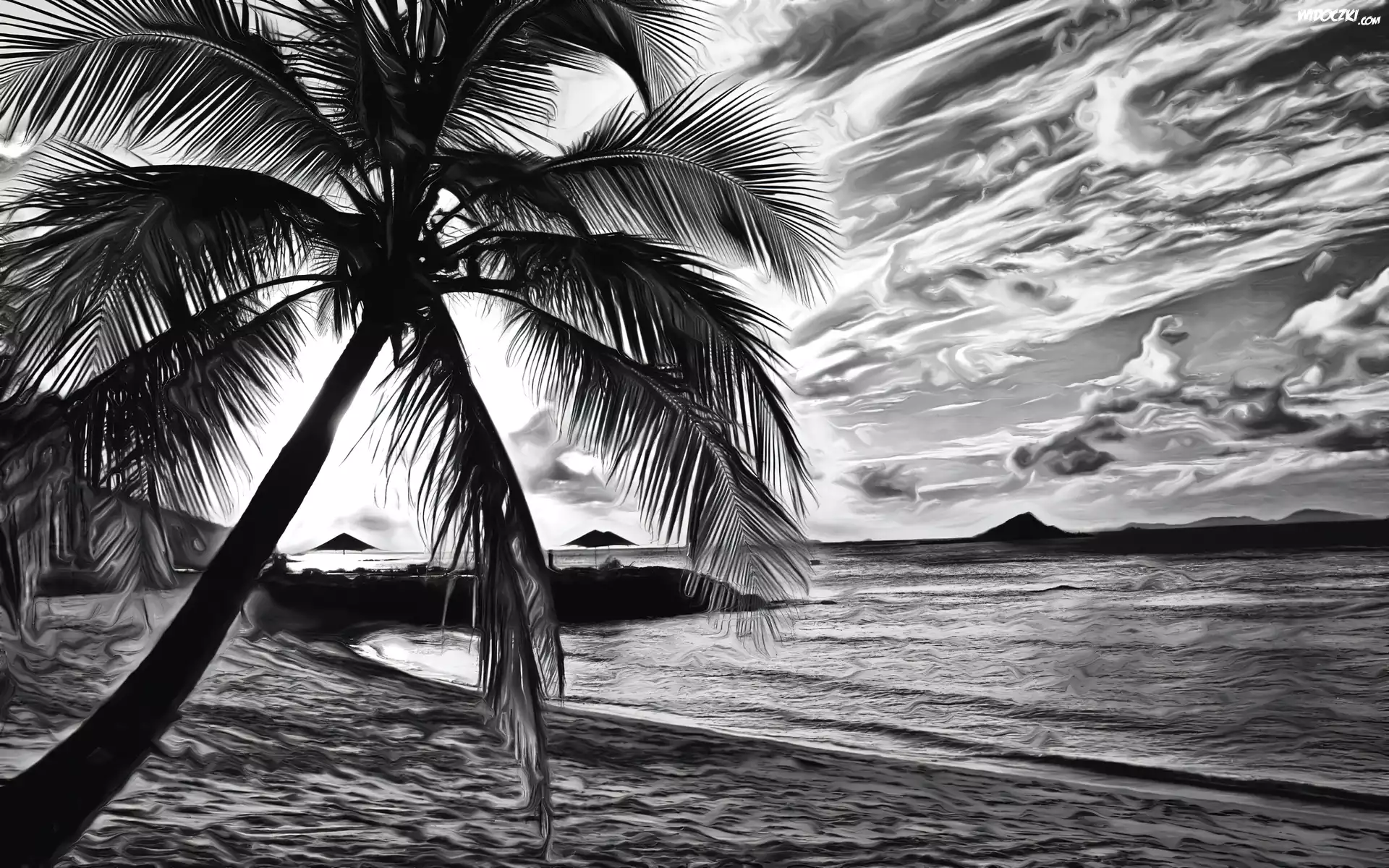 Zdjęcia, Chmury, Morze, Plaża, Palma