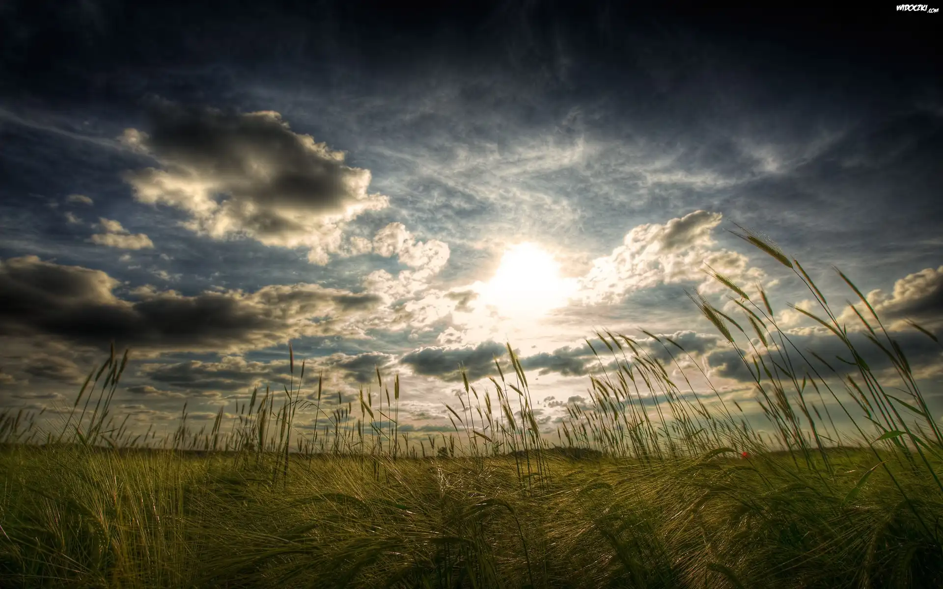 Zdjęcia, Chmury, Niebo, Przebijające, Światło