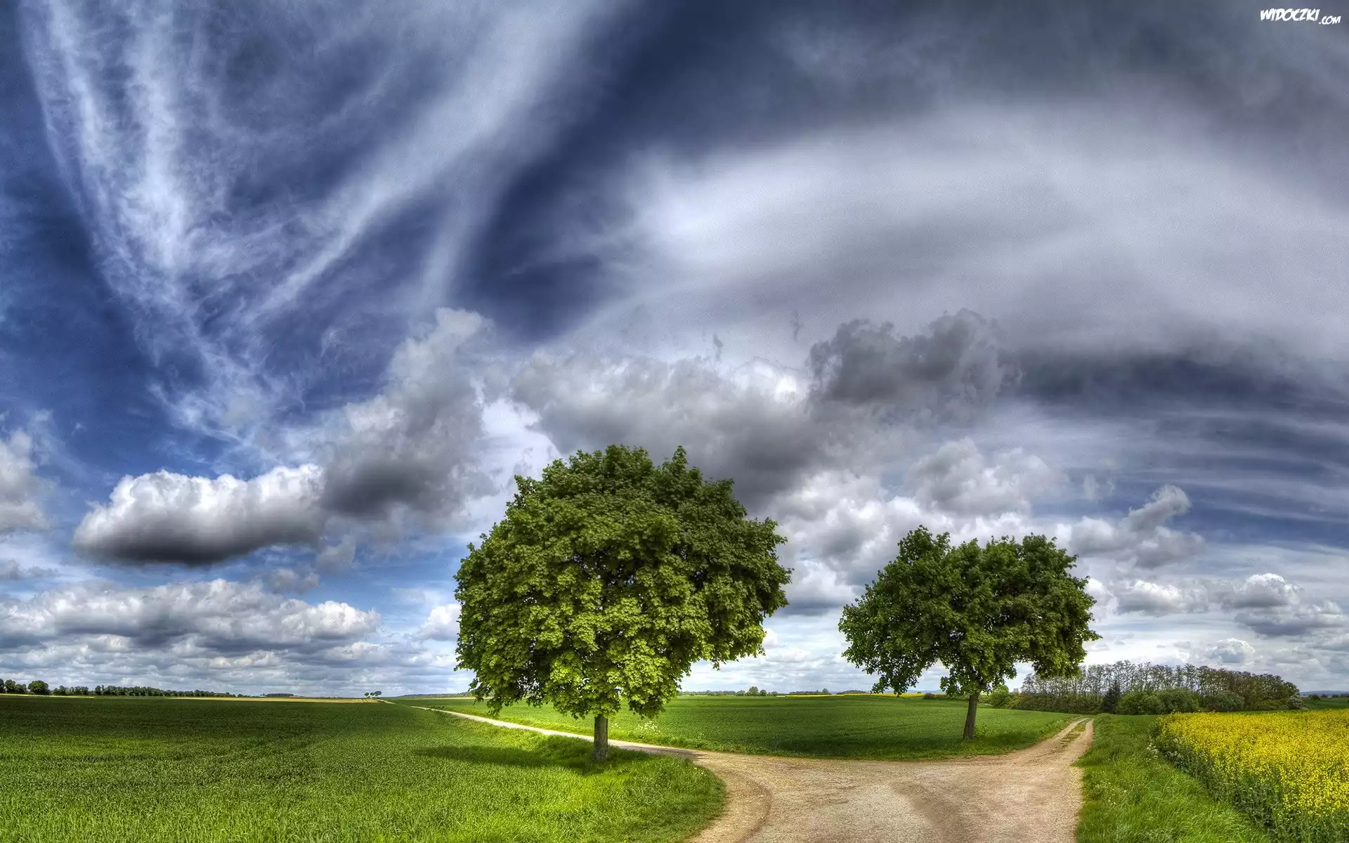 Zdjęcia, Chmury, Drzewa, Rozwidlenie, Drogi