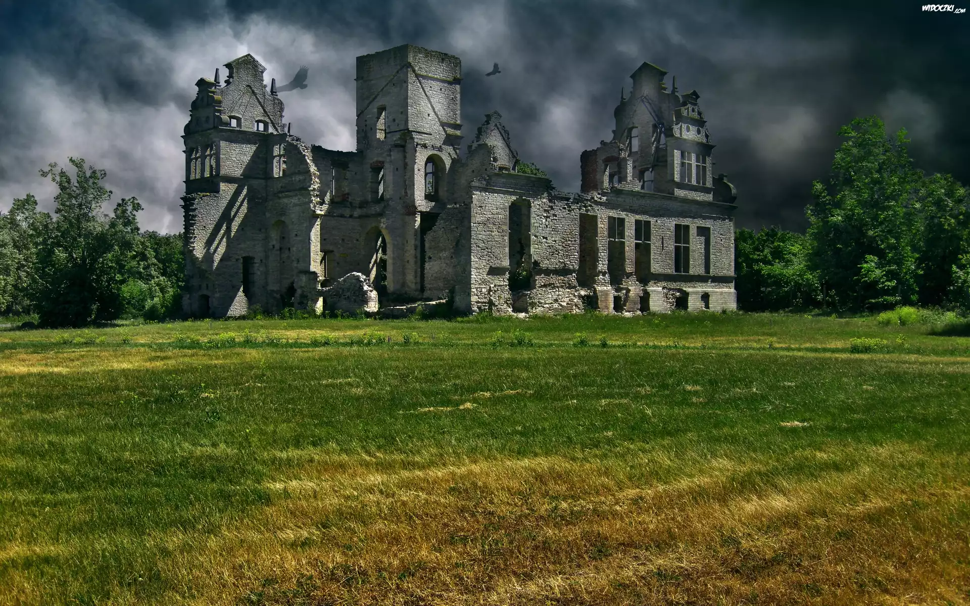 Zdjęcia, Chmury, Łąka, Ruiny, Zamku