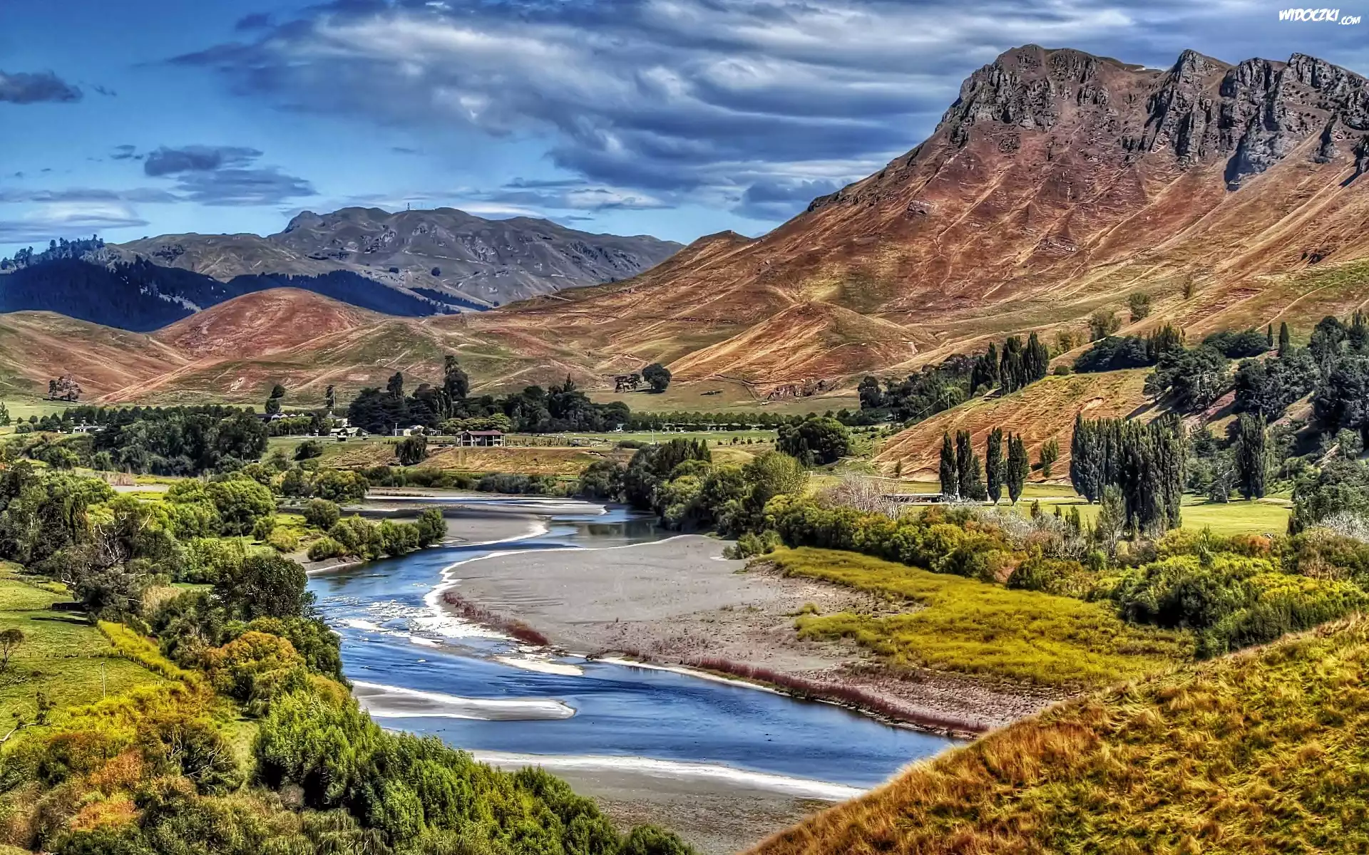 Chmury, Góry, Rzeka, Drzewa