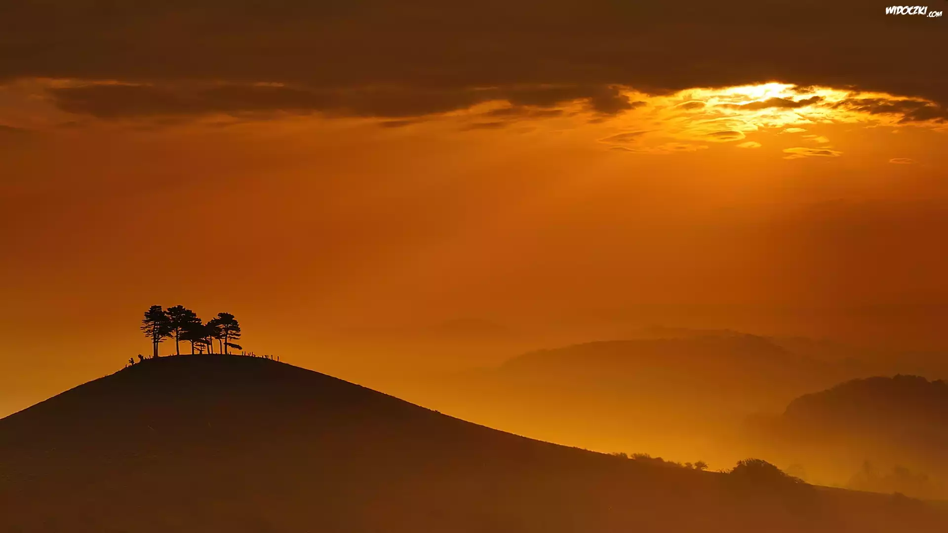 Zdjęcia, Chmury, Góry, Zachód, Słońca, Drzewa