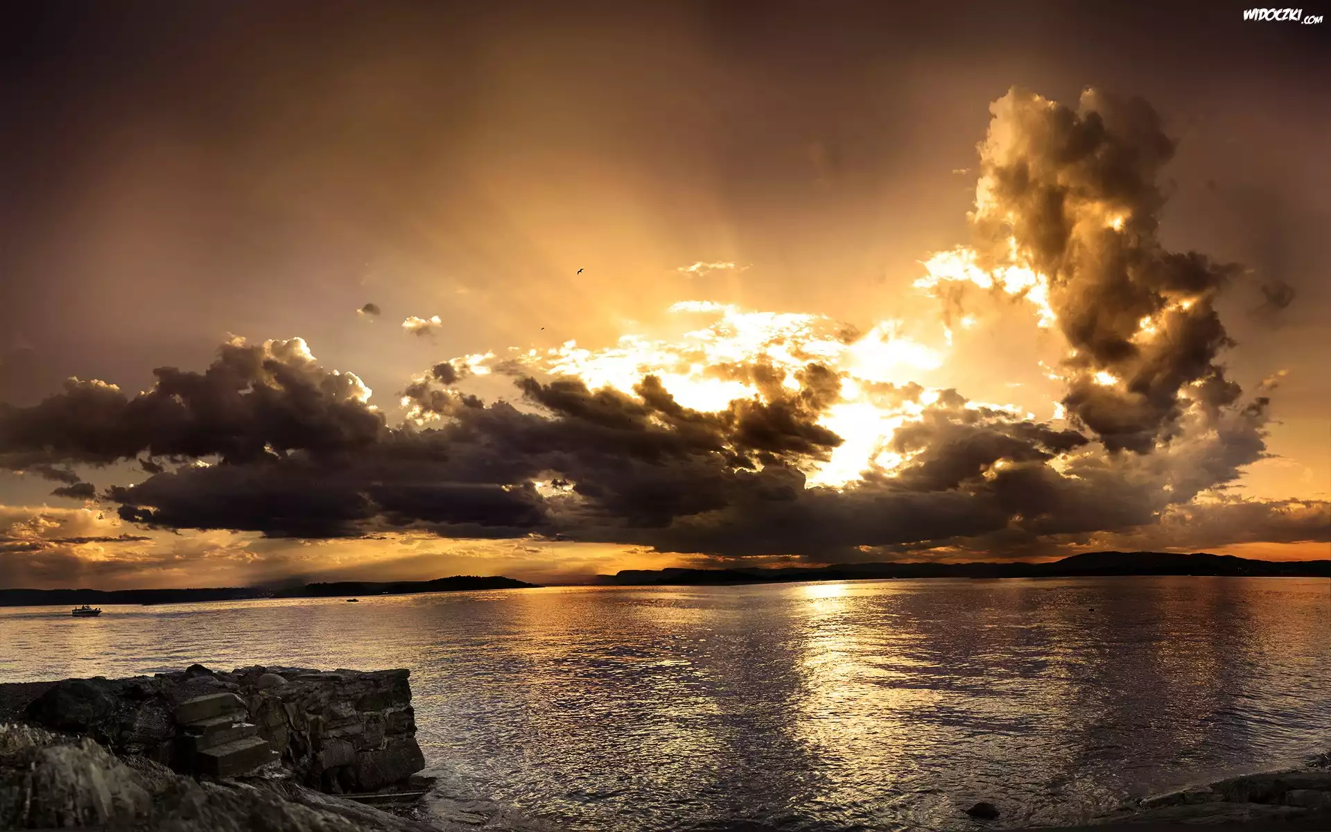 Zdjęcia, Chmury, Przebijające, Słońce, Jezioro
