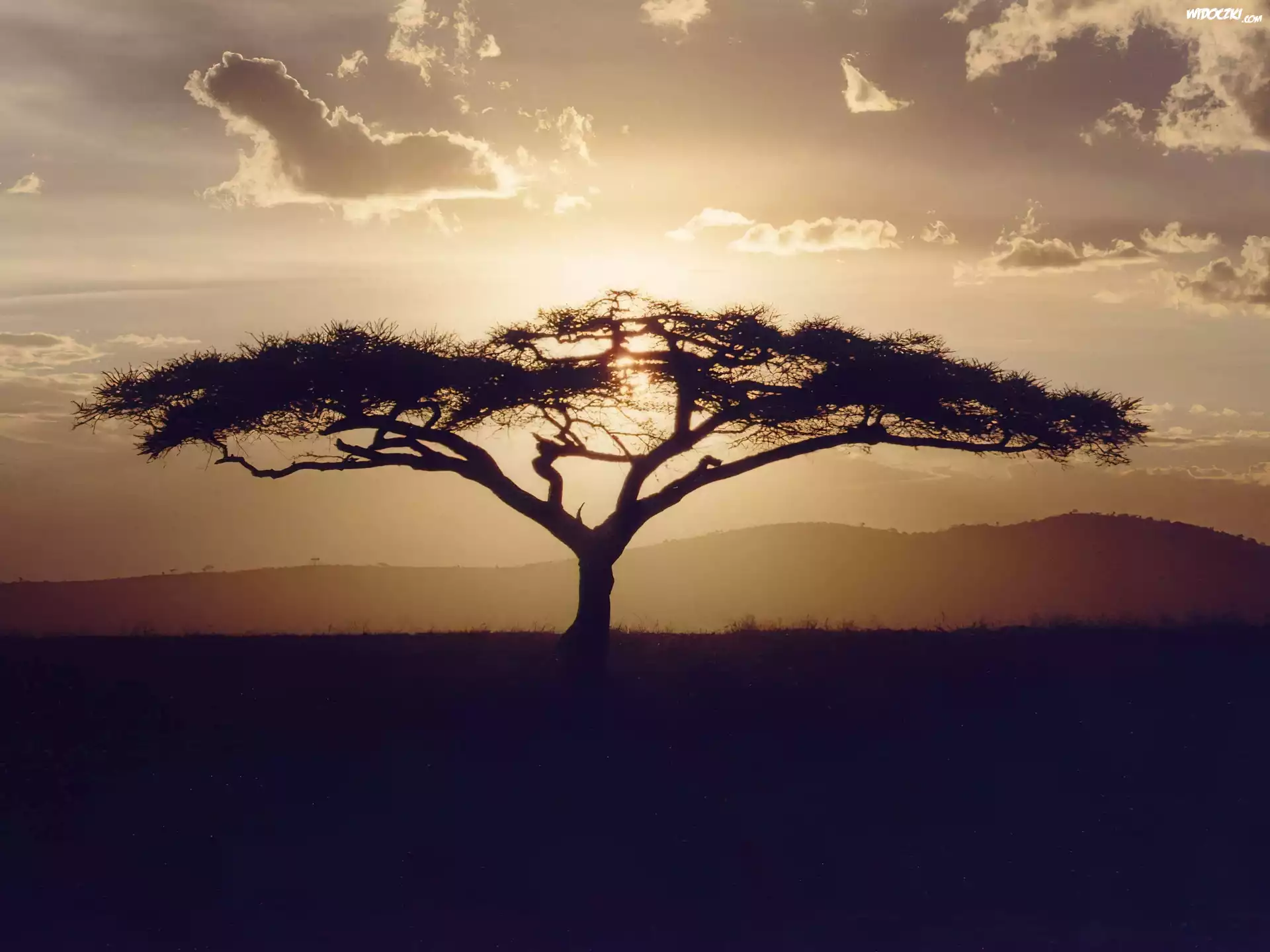 Chmury, Przebijające, Światło, Akacja