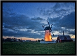 Zdjęcia, Wiatrak, Łąka, Wioska, Chmury