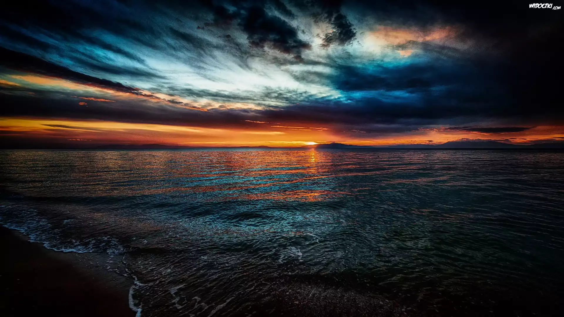 Zdjęcia, Chmury, Morze, Zachód słońca