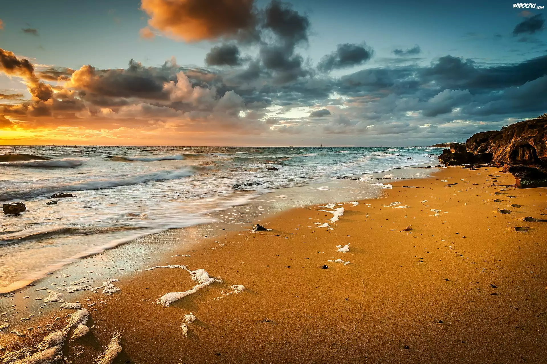 Zdjęcia, Chmury, Morze, Plaża, Zachód, Słońca