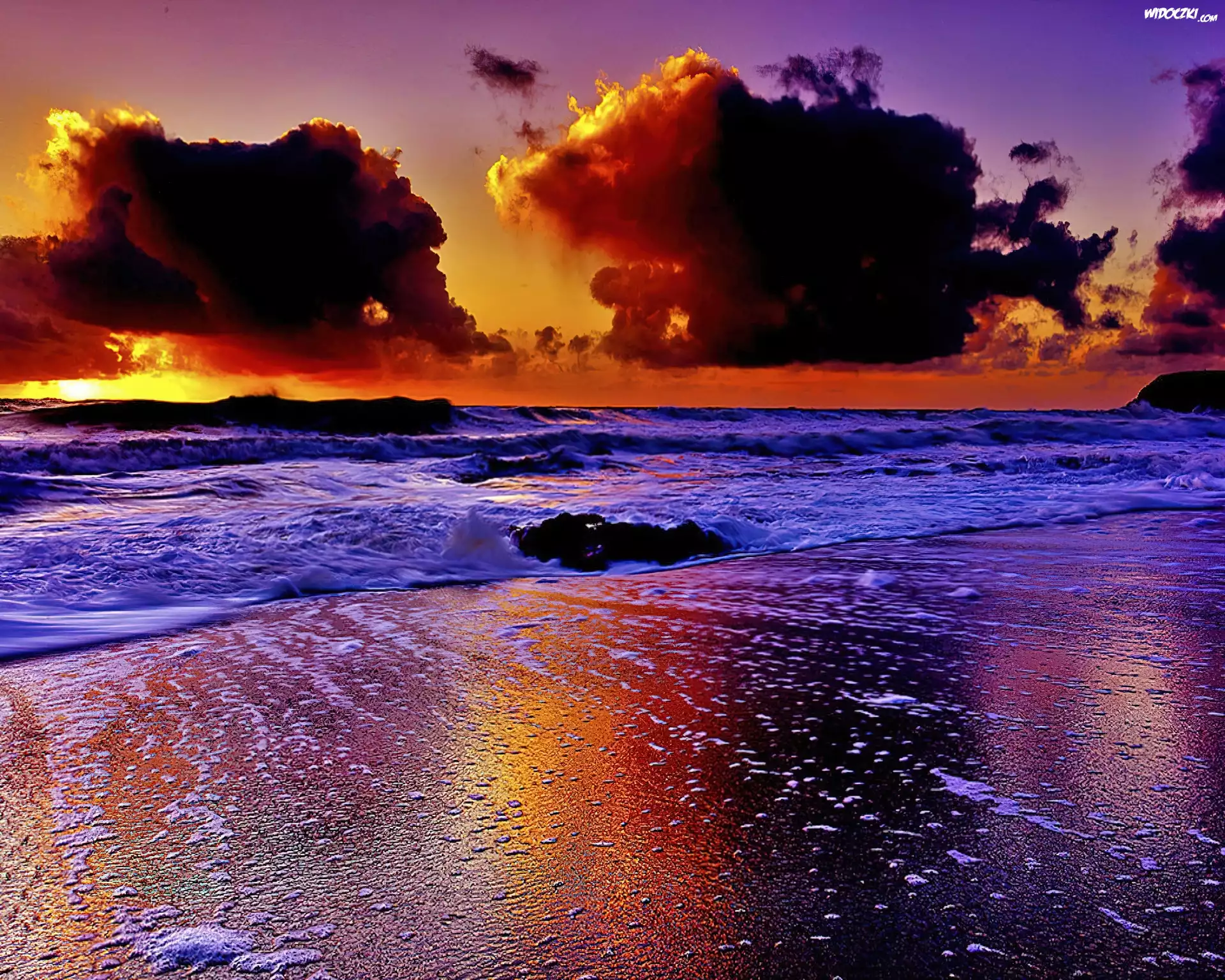 Zdjęcia, Chmury, Morze, Plaża, Zachód, Słońca
