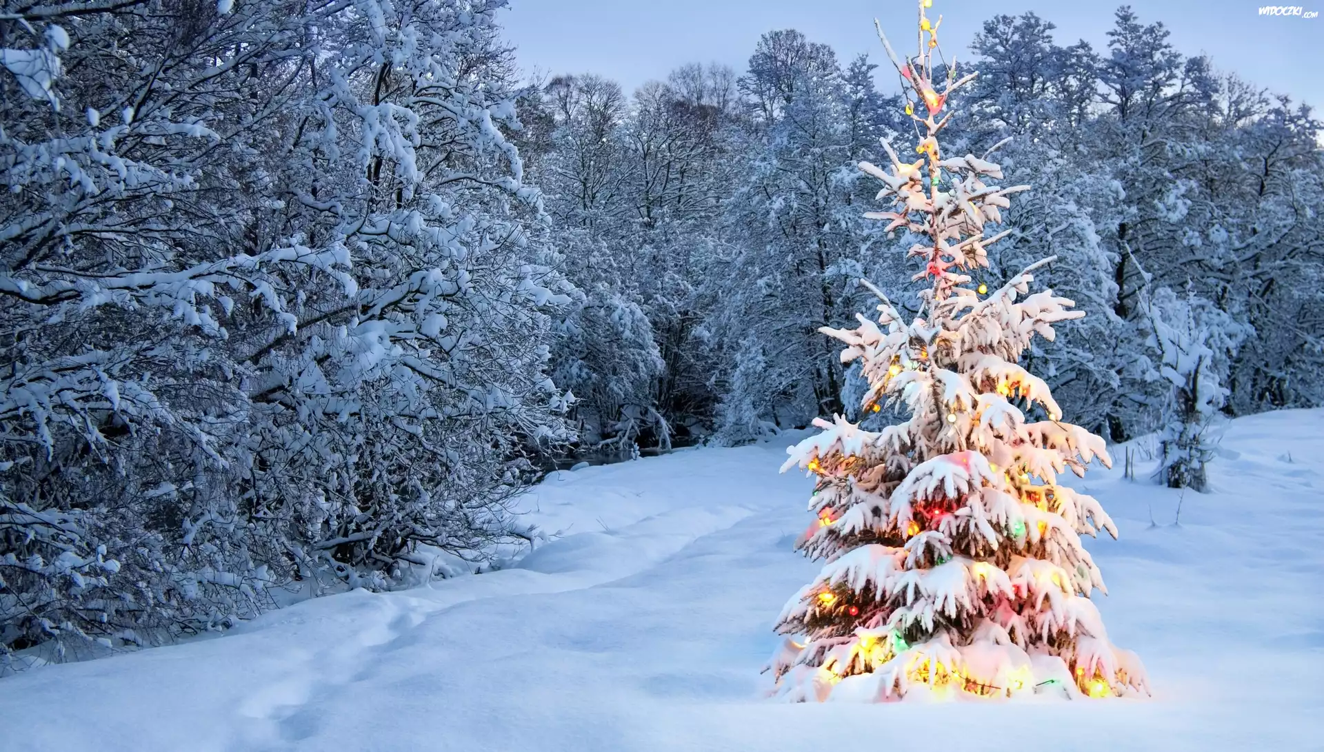 Zdjęcia, Świerki, Udekorowana, Choinka, Zima