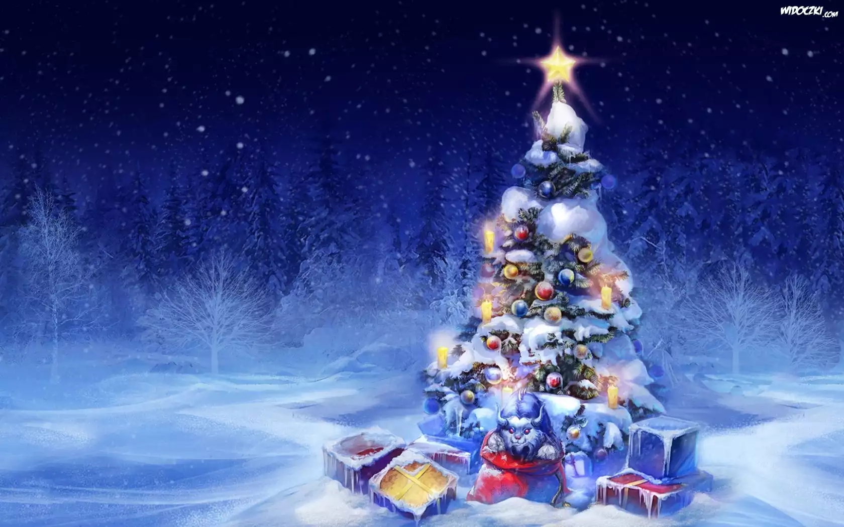 Choinka, Święta, Prezenty, Zima, Las