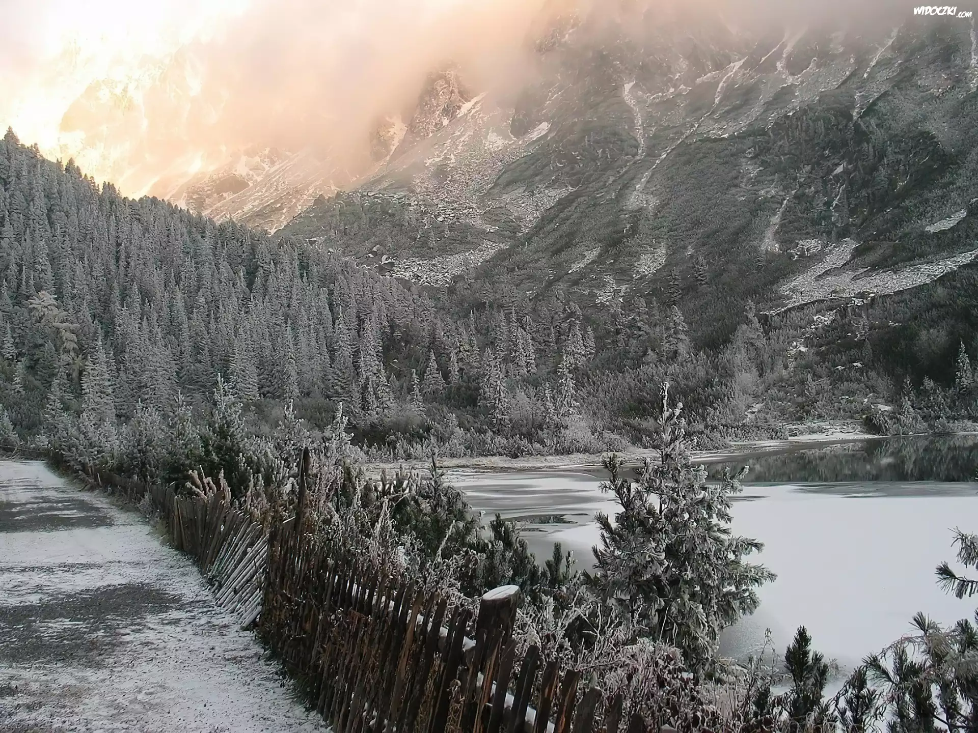 Wodospad Góry, Rzeki Góra Góra, Niebo Góra Góra, Jezioro Góra, Rzeki Góra Góra, Drewniana chatka Góra, Jeziora Góra, Jeziora, Wisona Góra, Zima Góra Przejrzysta Woda, Fala, Niebo, Góra Góra