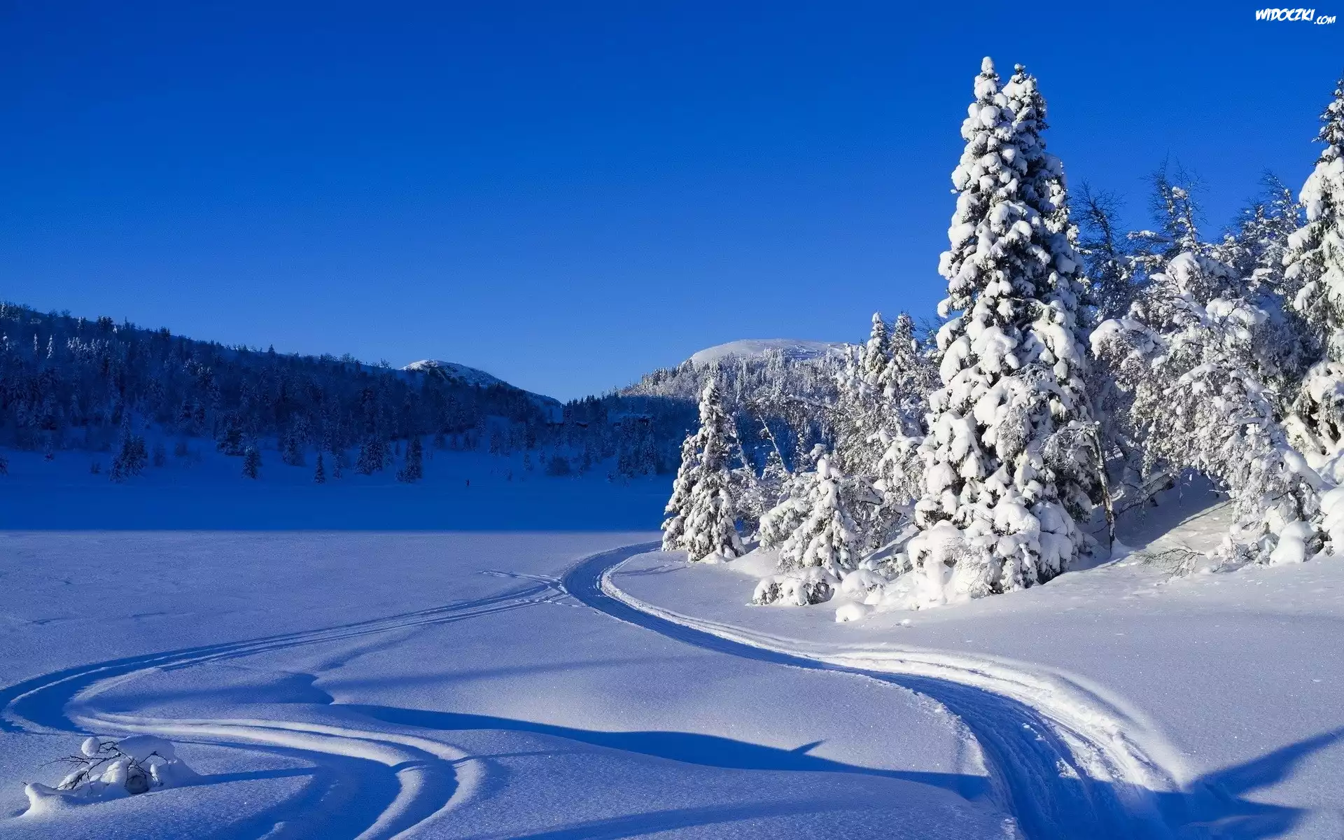 Zdjęcia, Choinki, Śnieg, Góry, Niebo