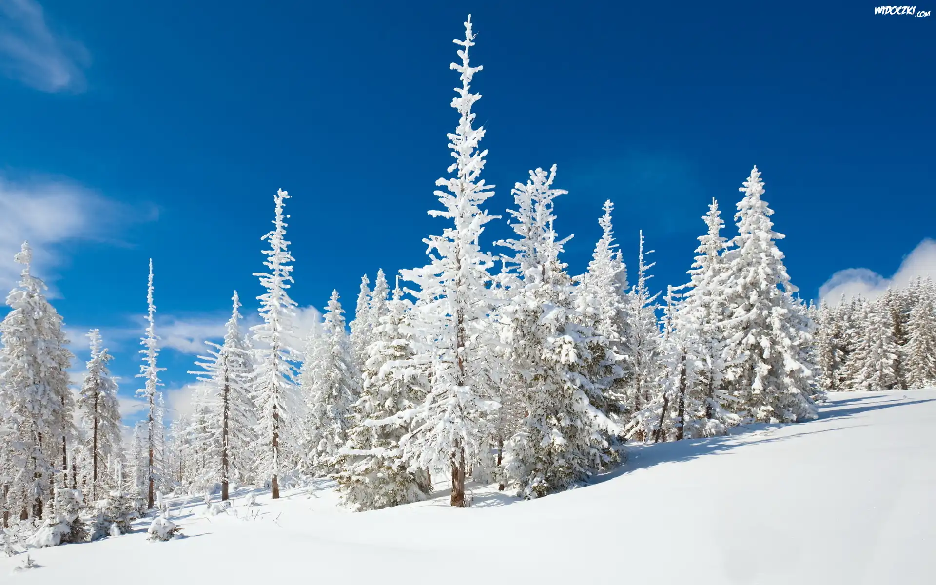 Zdjęcia, Ośnieżone, Choinki, Śnieg