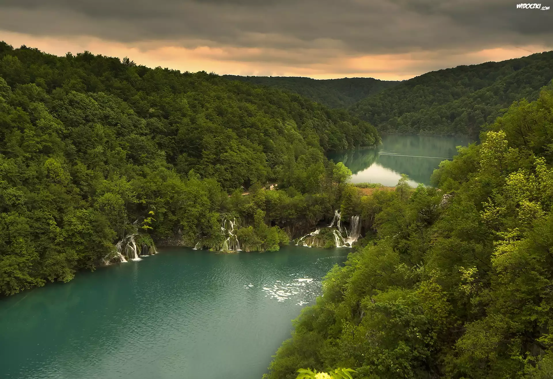 Zdjęcia, Chorwacja, Las, Rzeka, Wodospad