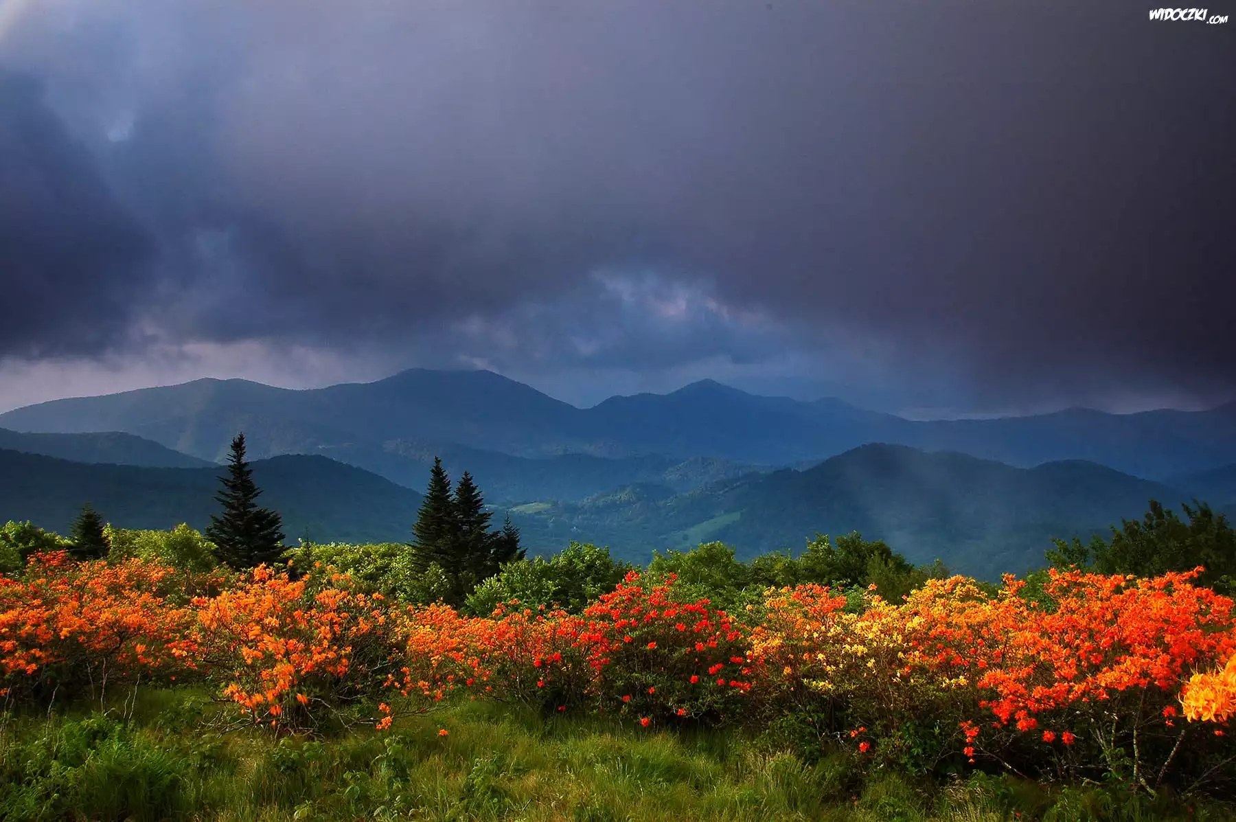 Zdjęcia, Ciemne, Chmury, Góry, Kwiaty