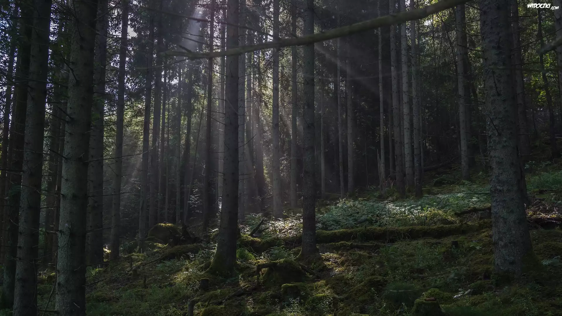 Zdjęcia, Ciemny, Las, Drzewa, Przebijające światło