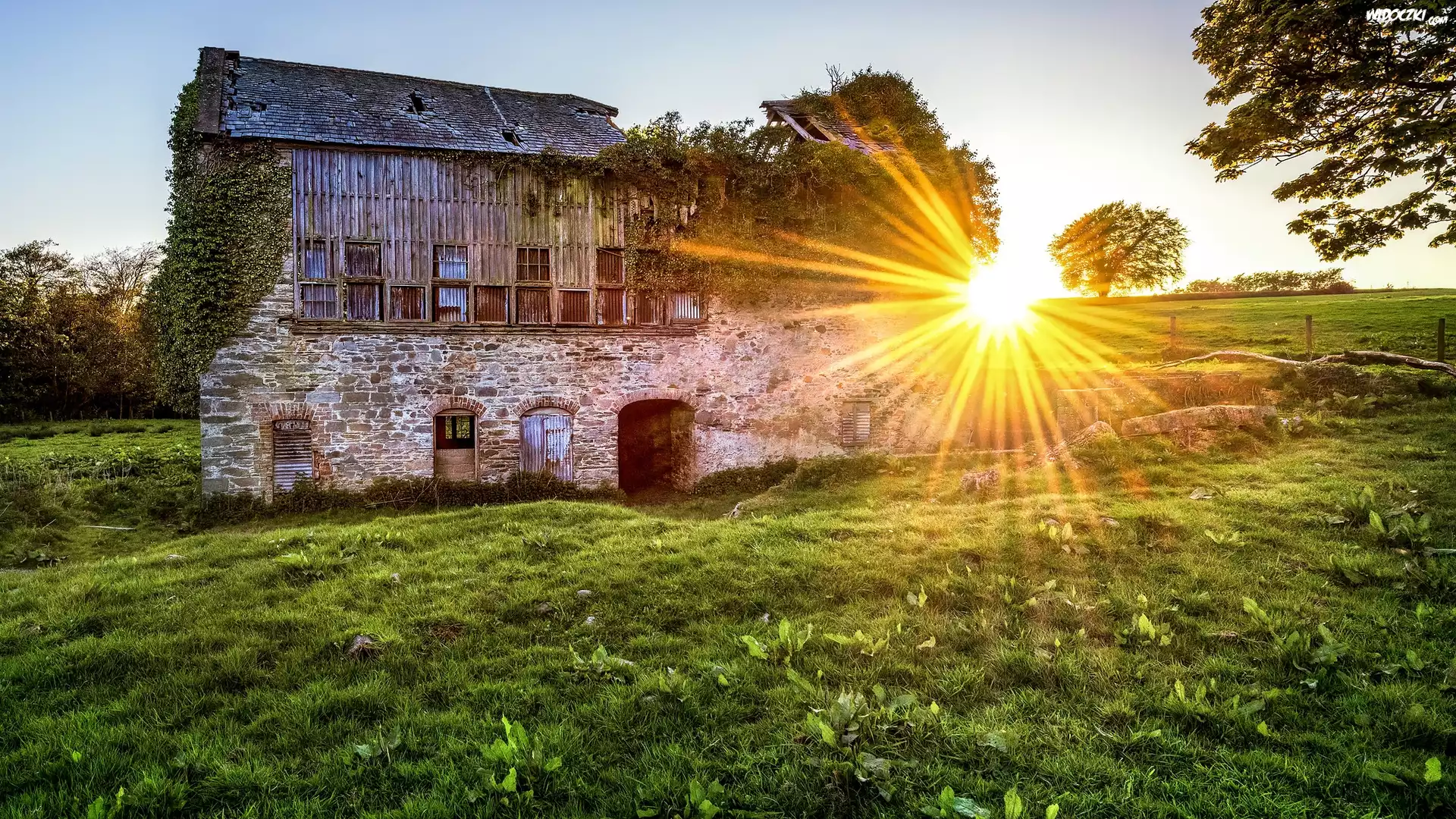 Promienie słońca, Młyn, Old Leckpatrick Corn Mill, Artigarvan, Hrabstwo Tyrone, Irlandia Północna |