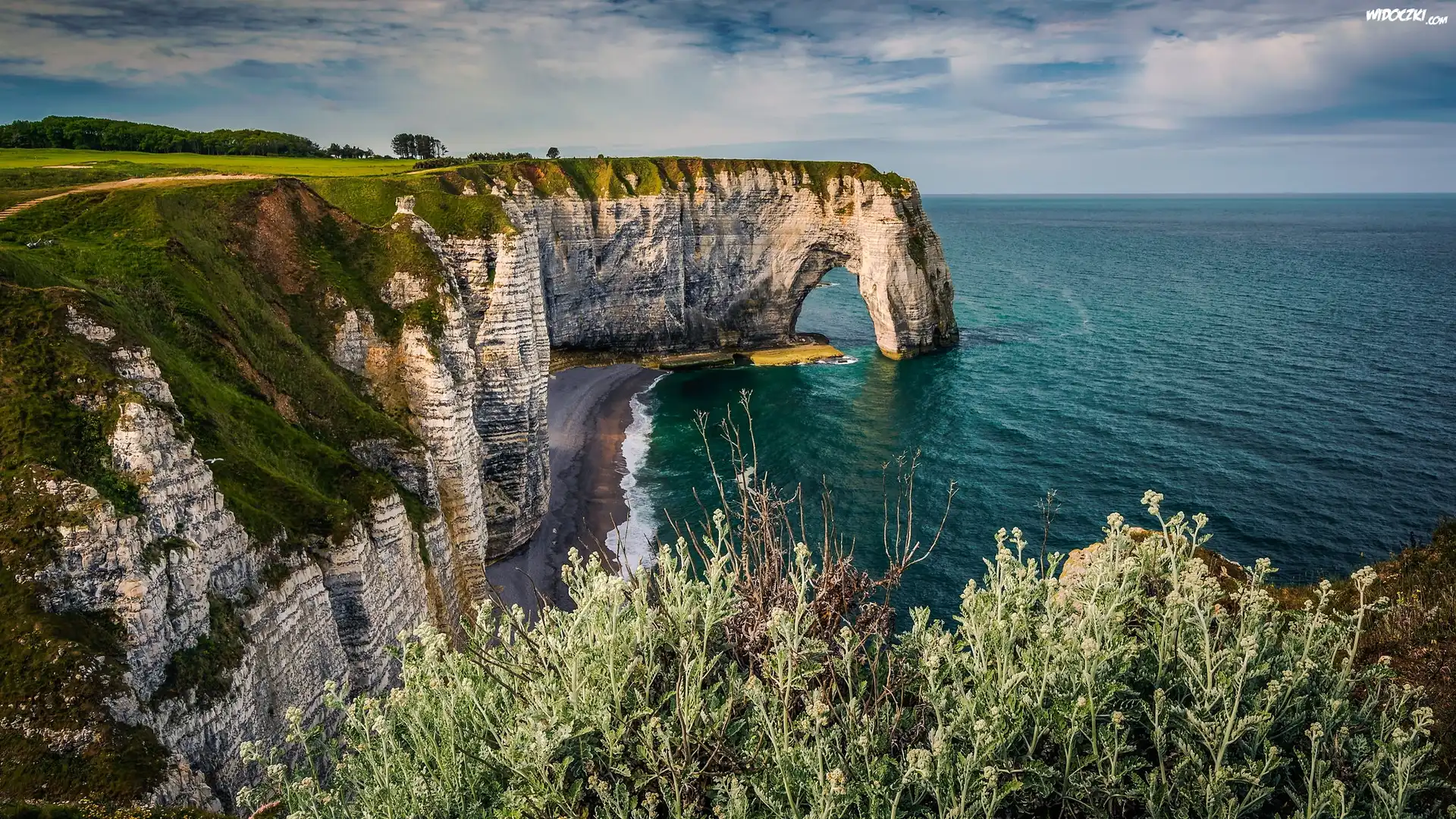 Zdjęcia, Wybrzeże Alabastrowe, Cote d Albatre, Klify, Skały, Morze, Etretat, Normandia, Francja