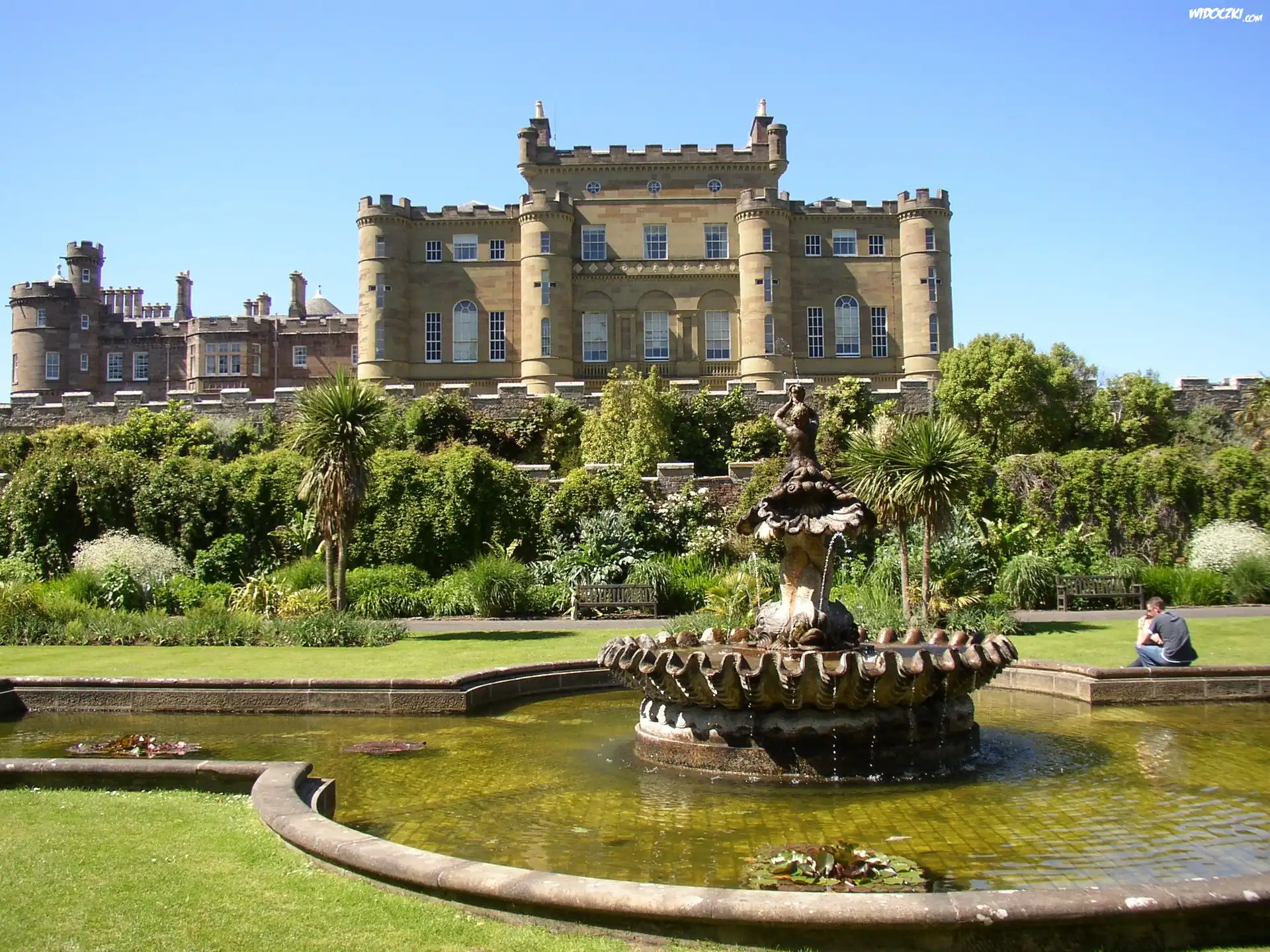 Zdjęcia, Zamek Culzean, Culzean Castle, Miasto Maybole, Szkocja, Wielka Brytania, Park, Fontanna