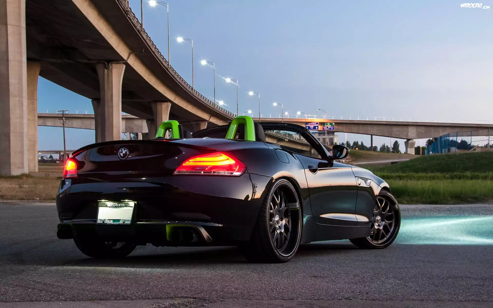 Zdjęcia, Czarne, BMW, Wiadukt, Latarnie, Drogi
