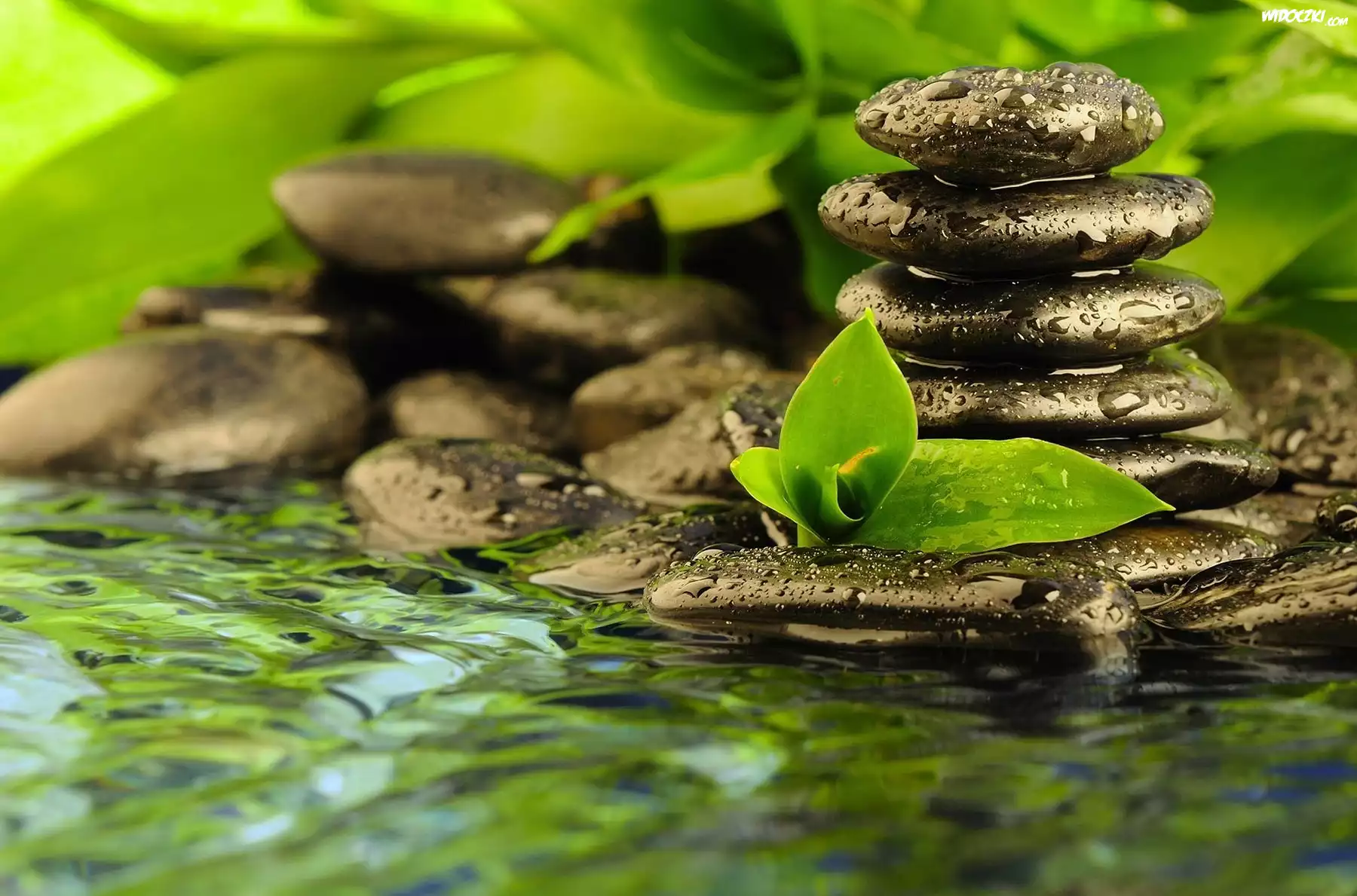 Zdjęcia, Czarne, Kamienie, Woda, Roślina