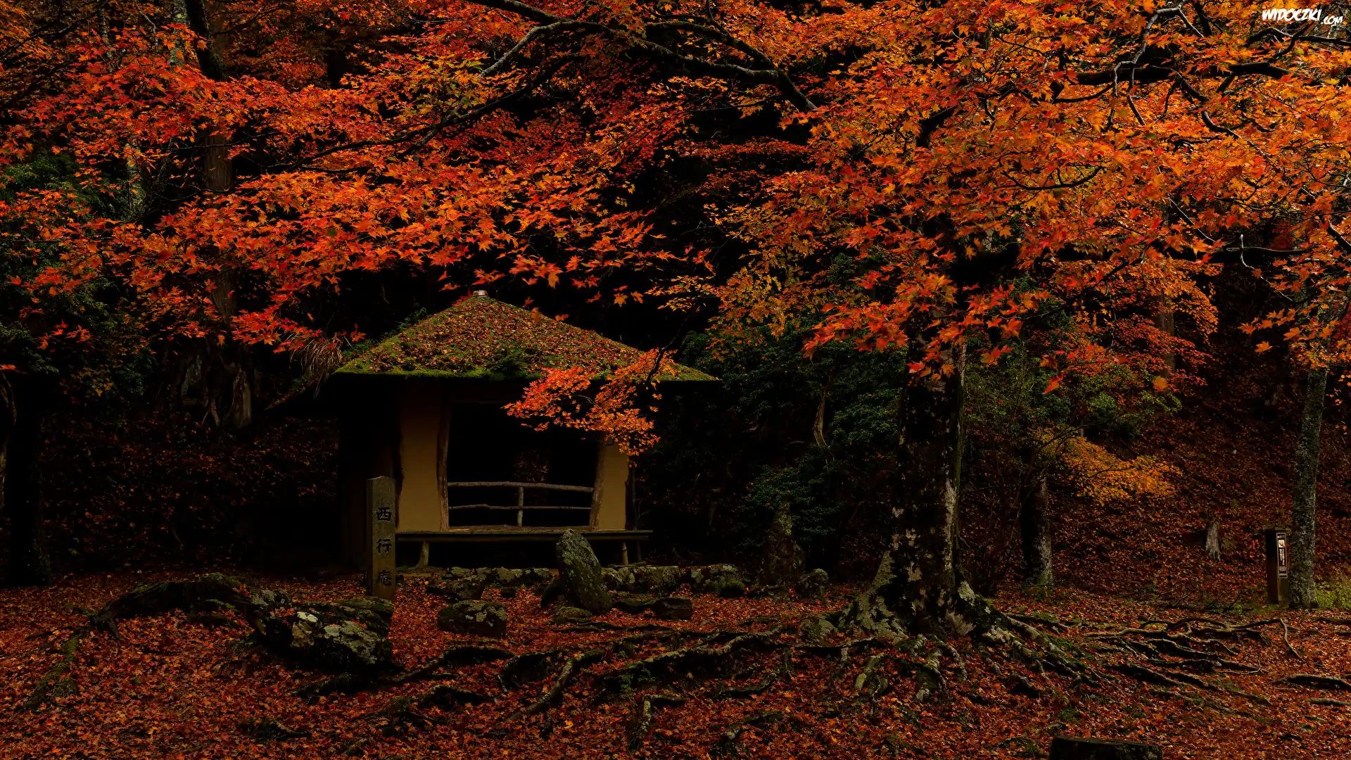Jesień, Drzewa, Czerwonawe, Liście, Altana, Park w Nara, Miejscowość Nara, Japonia