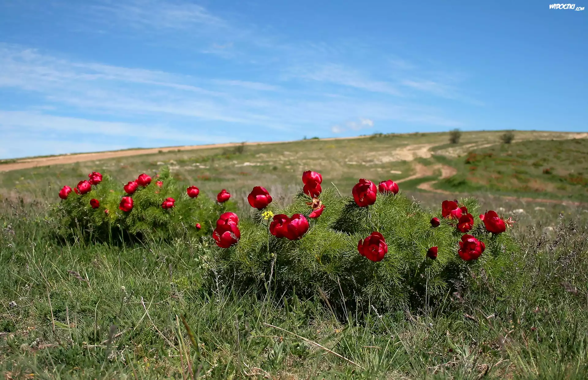 Zdjęcia, Łąka, Krajobraz, Czerwone, Kwiaty