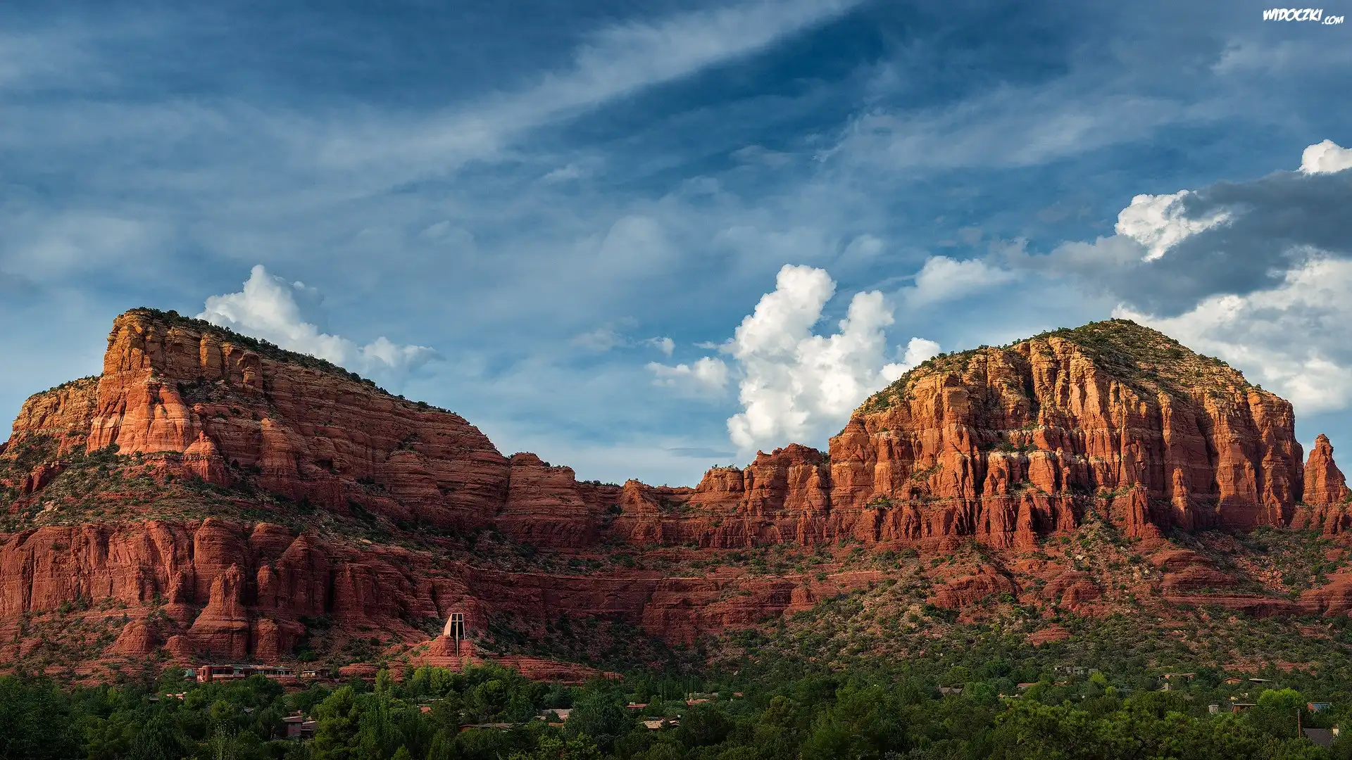 Zdjęcia, Czerwone, Skały, Drzewa, Rośliny, Niebo