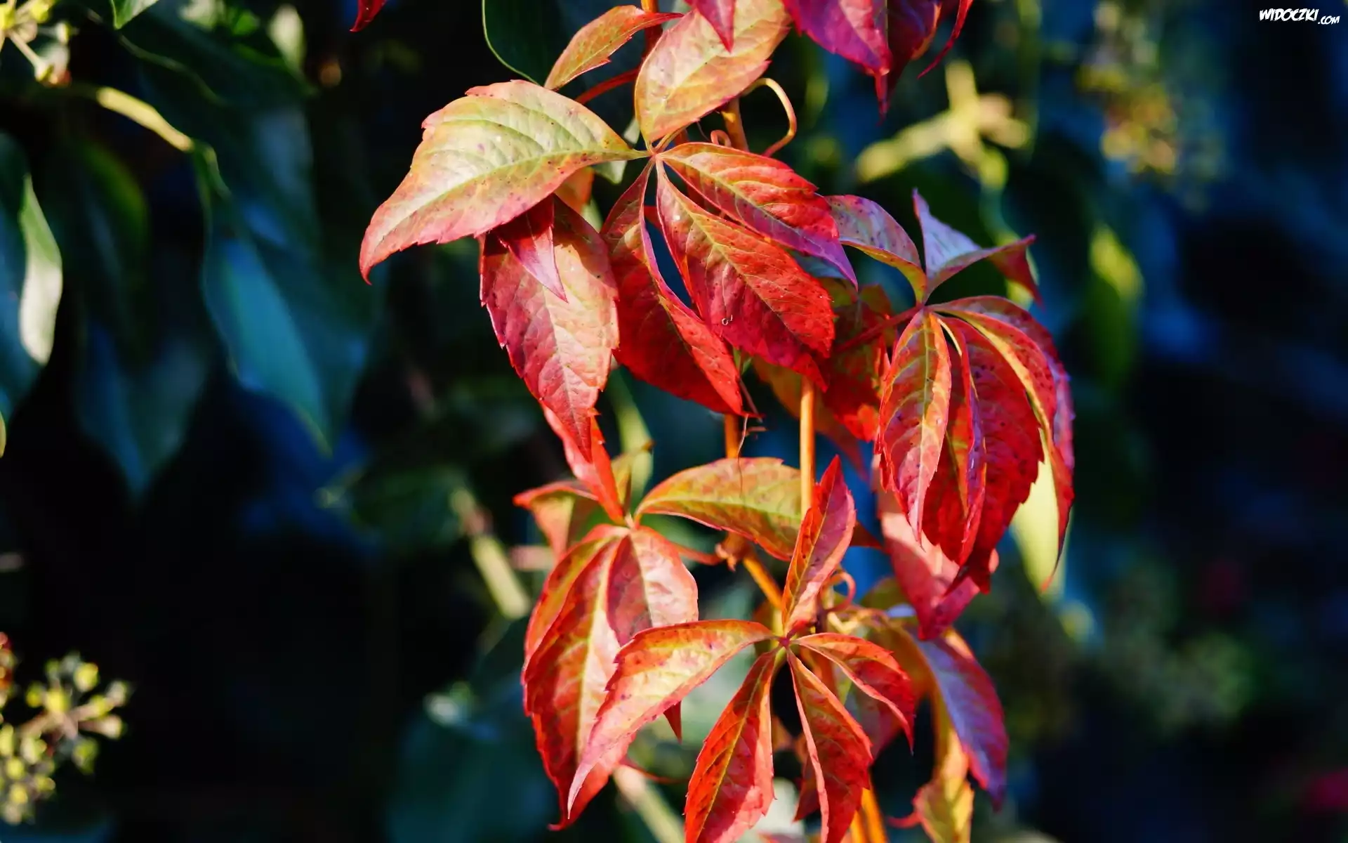 Zdjęcia, Czerwone, Liście, Dzikie wino, Jesień