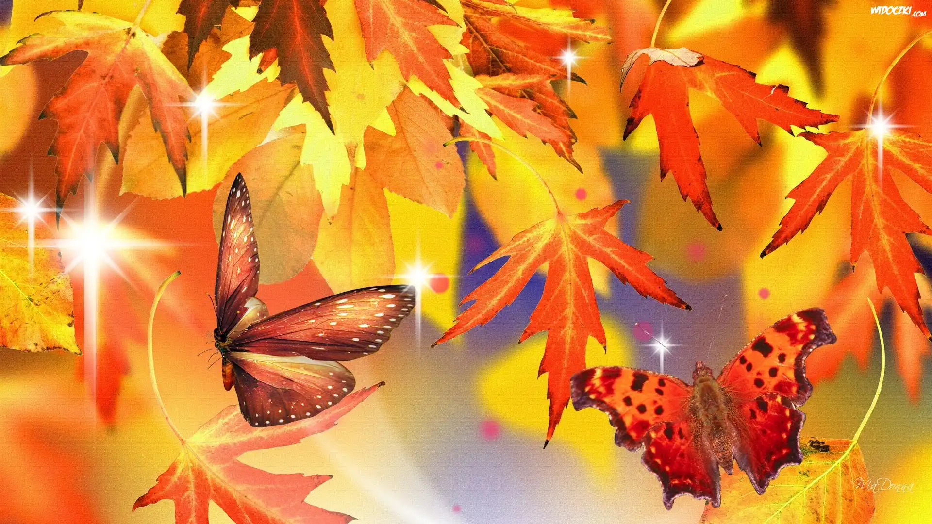 Czerwono, Żółte, Liście, Jesień, Motyle
