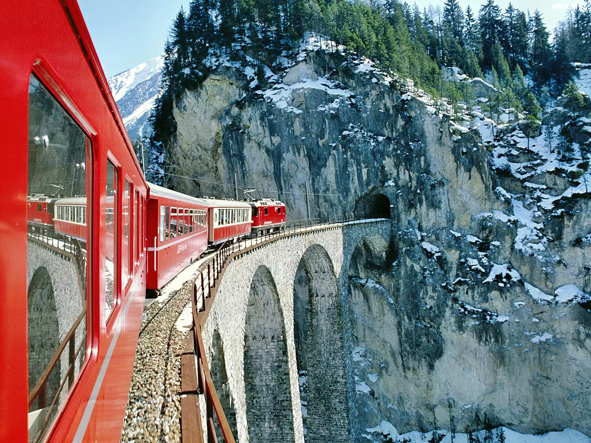 Zdjęcia, Czerwony, Pociąg, Most, Góry