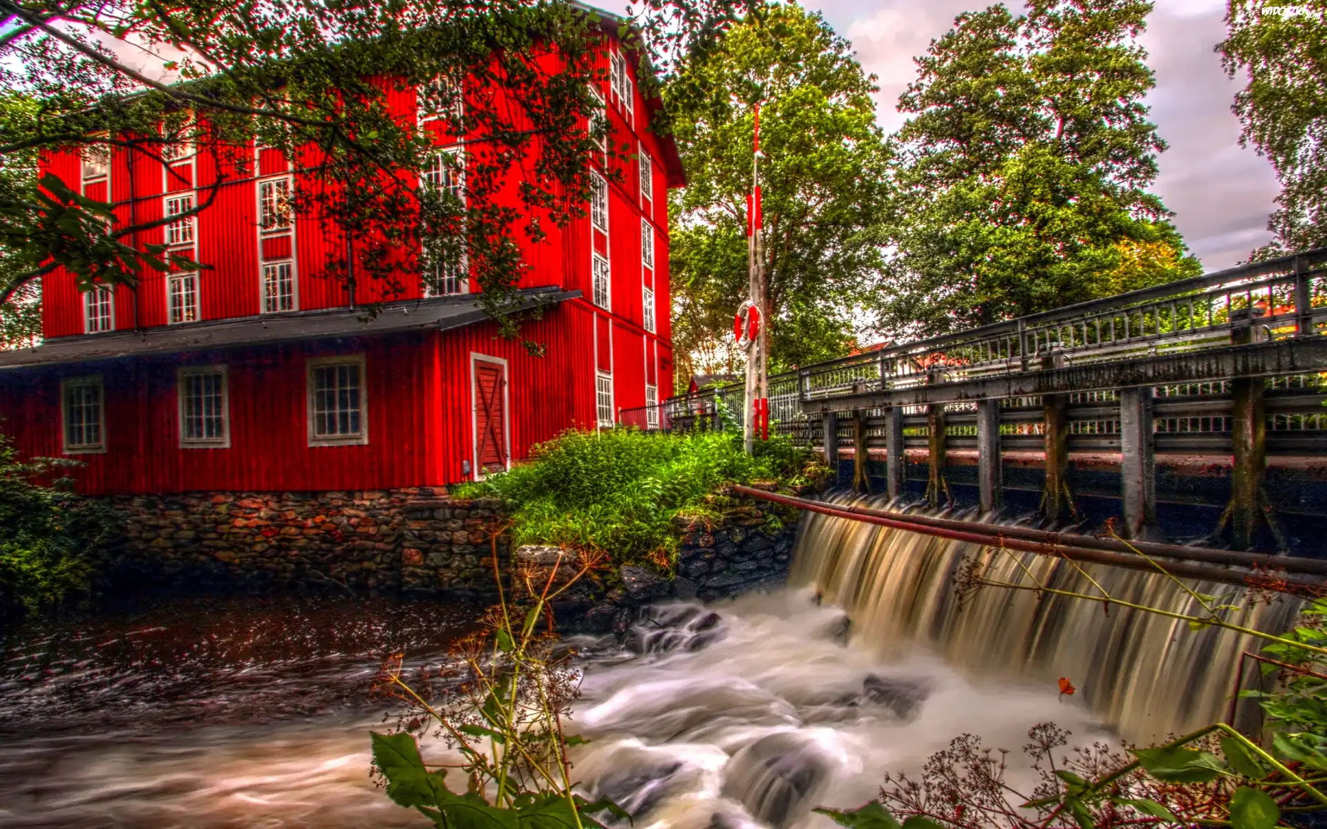 Zdjęcia, Czerwony, Dom, Rzeka, Tama