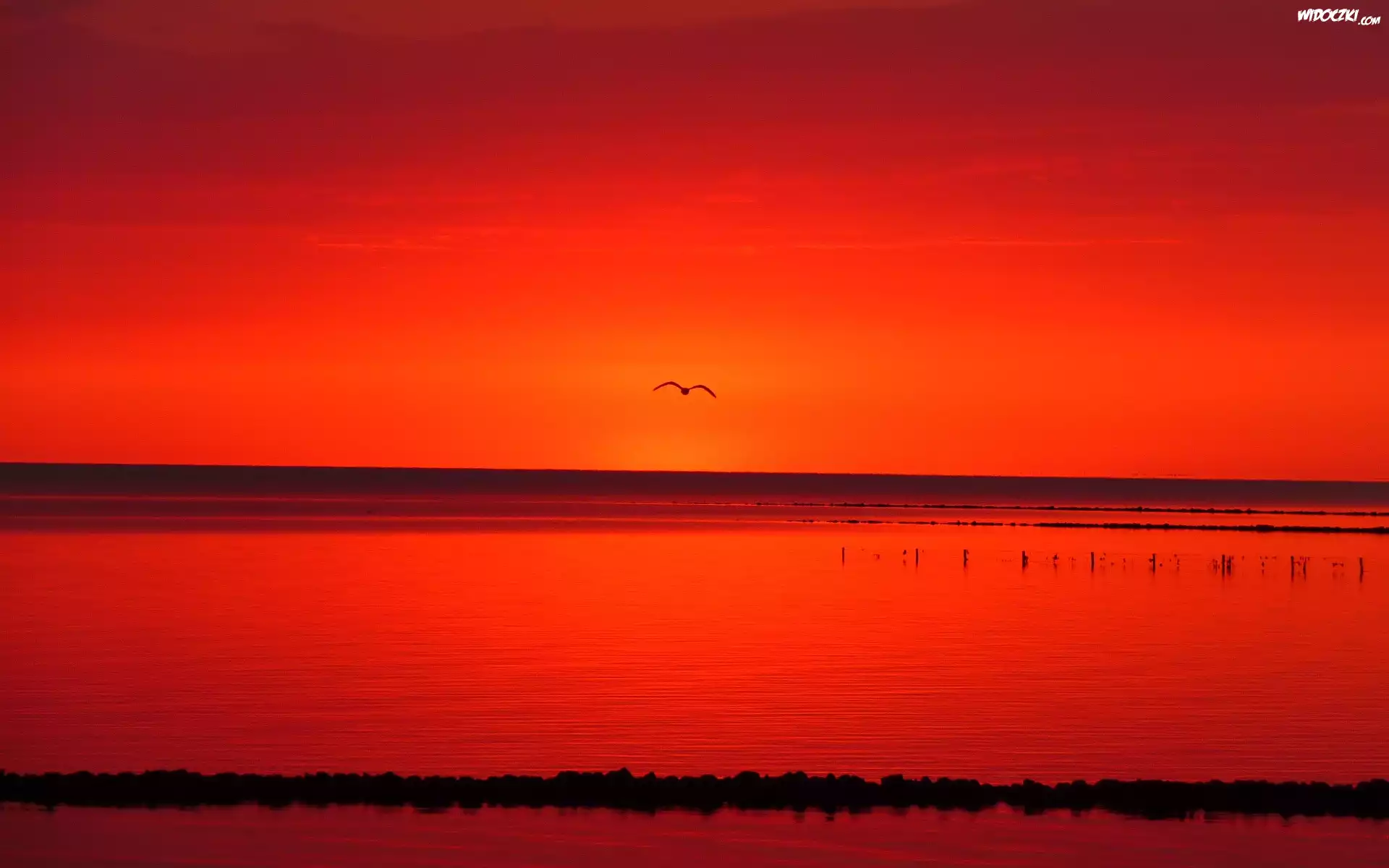 Zdjęcia, Czerwony, Zachód Słońca, Jezioro