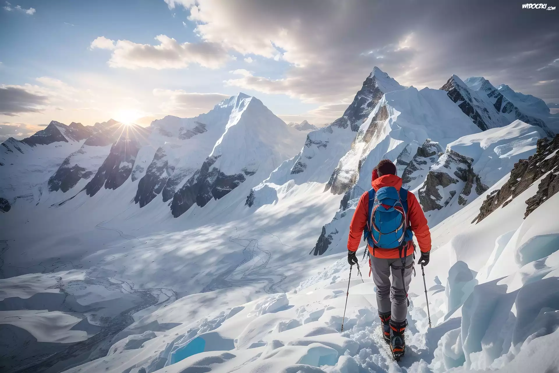 Zdjęcia, Góry, Zima, Turysta, Człowiek