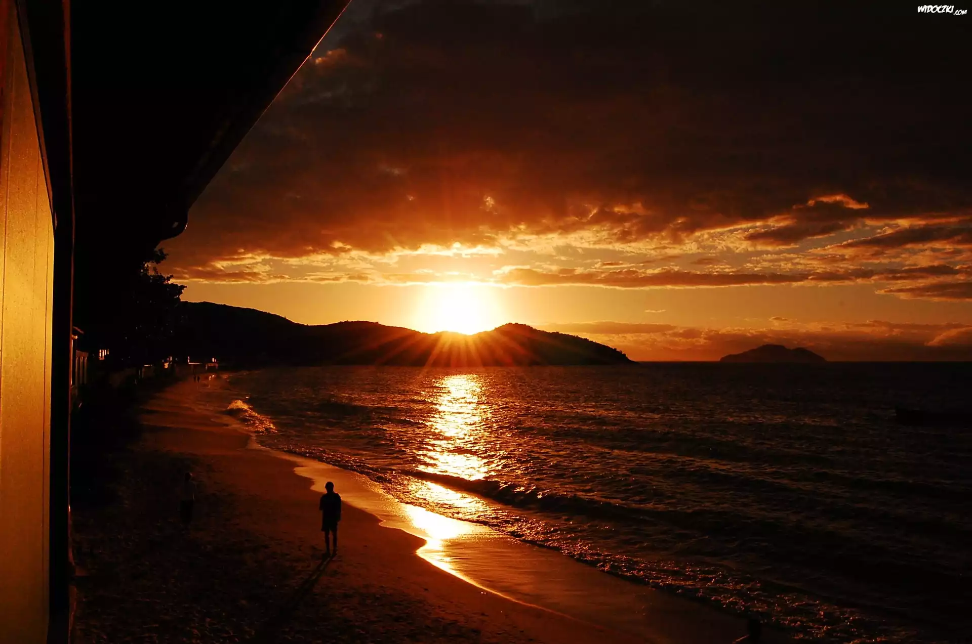 Zdjęcia, Człowiek, Plaża, Morze, Zachód, Słońca
