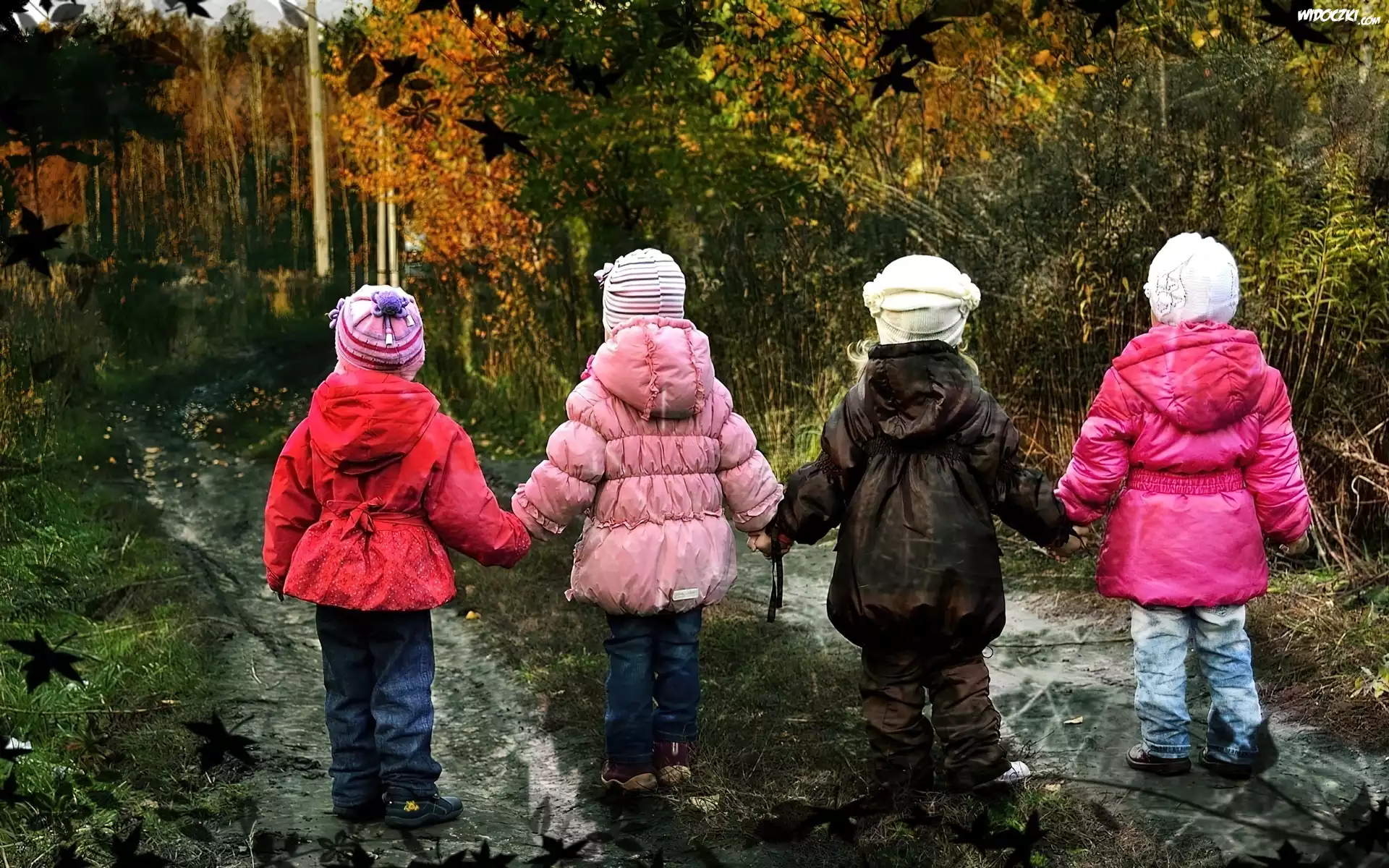 Zdjęcia, Czworo, Dzieci, Jesień, Las, Spacer