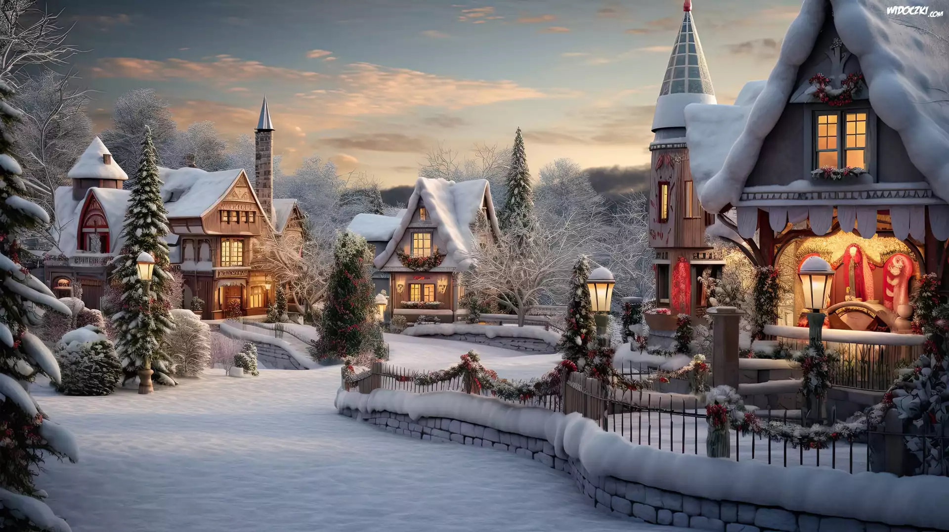 Boże Narodzenie, Domy, Dekoracje, Grafika, Zima