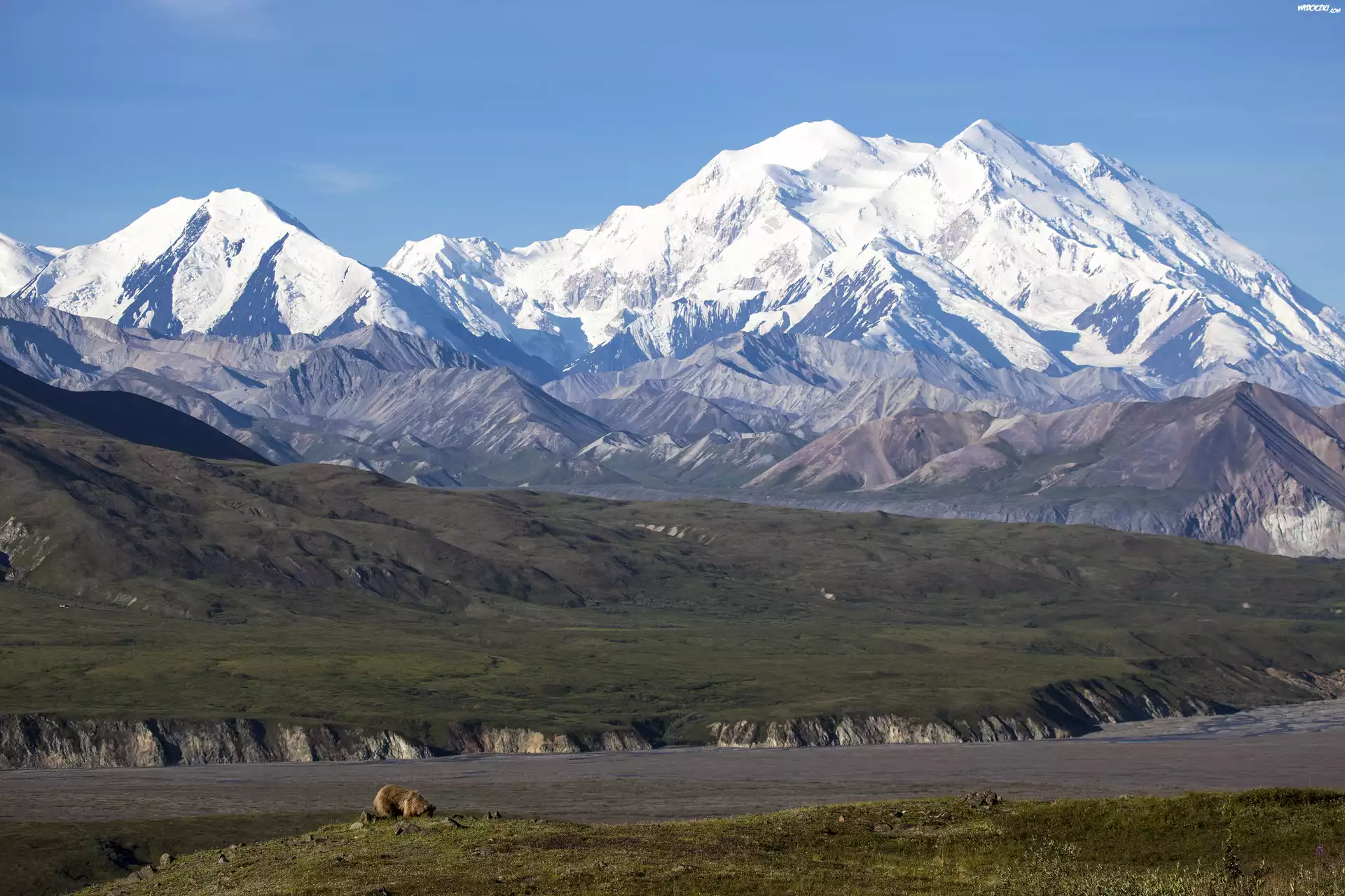 Stany Zjednoczone, Stan Alaska, Park Narodowy Denali, Kordyliery, Niedźwiedzie, Góry Alaska, Szczyt Denali, Mount McKinley |
