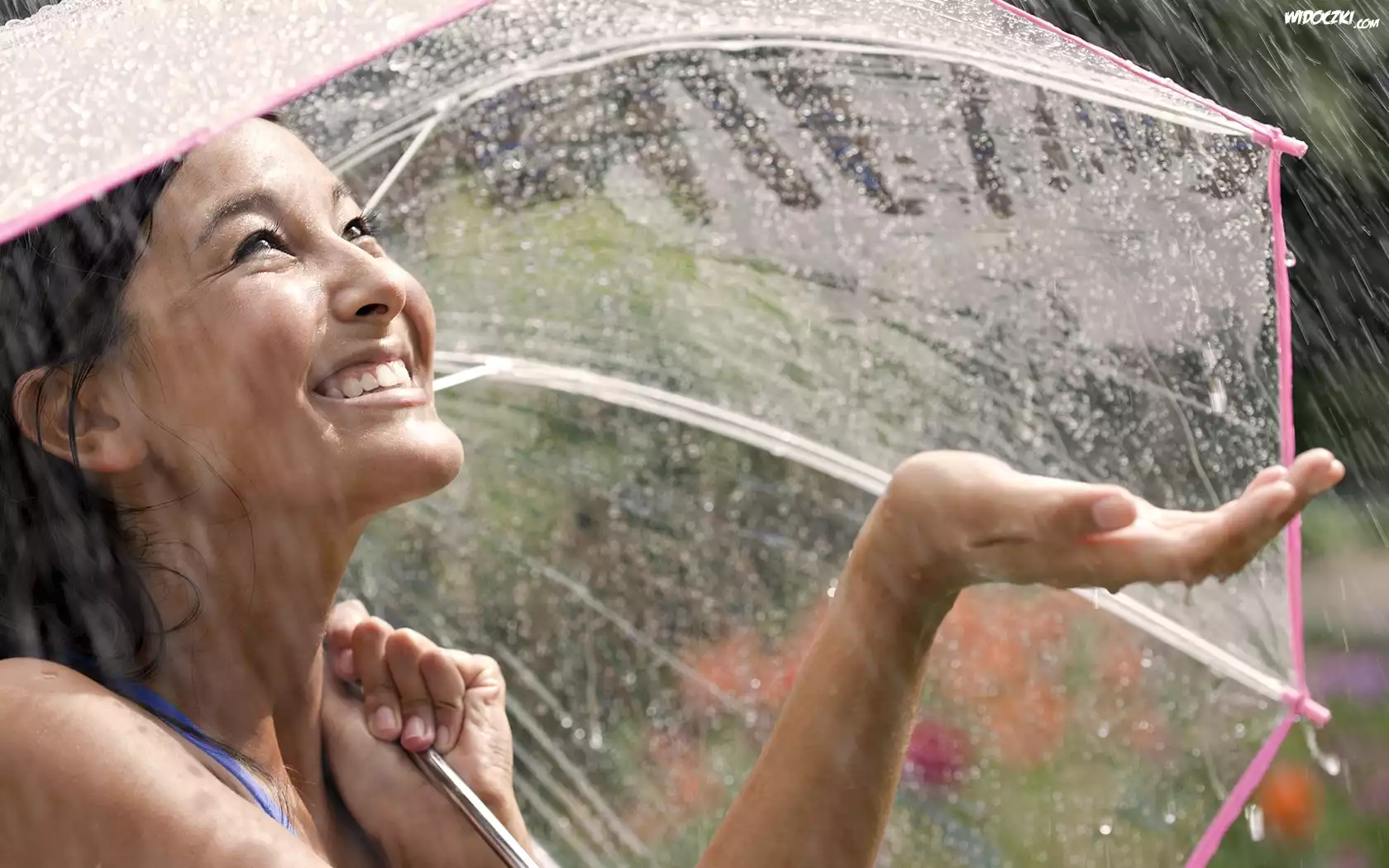 Zdjęcia, Kobieta, Deszcz, Parasolka