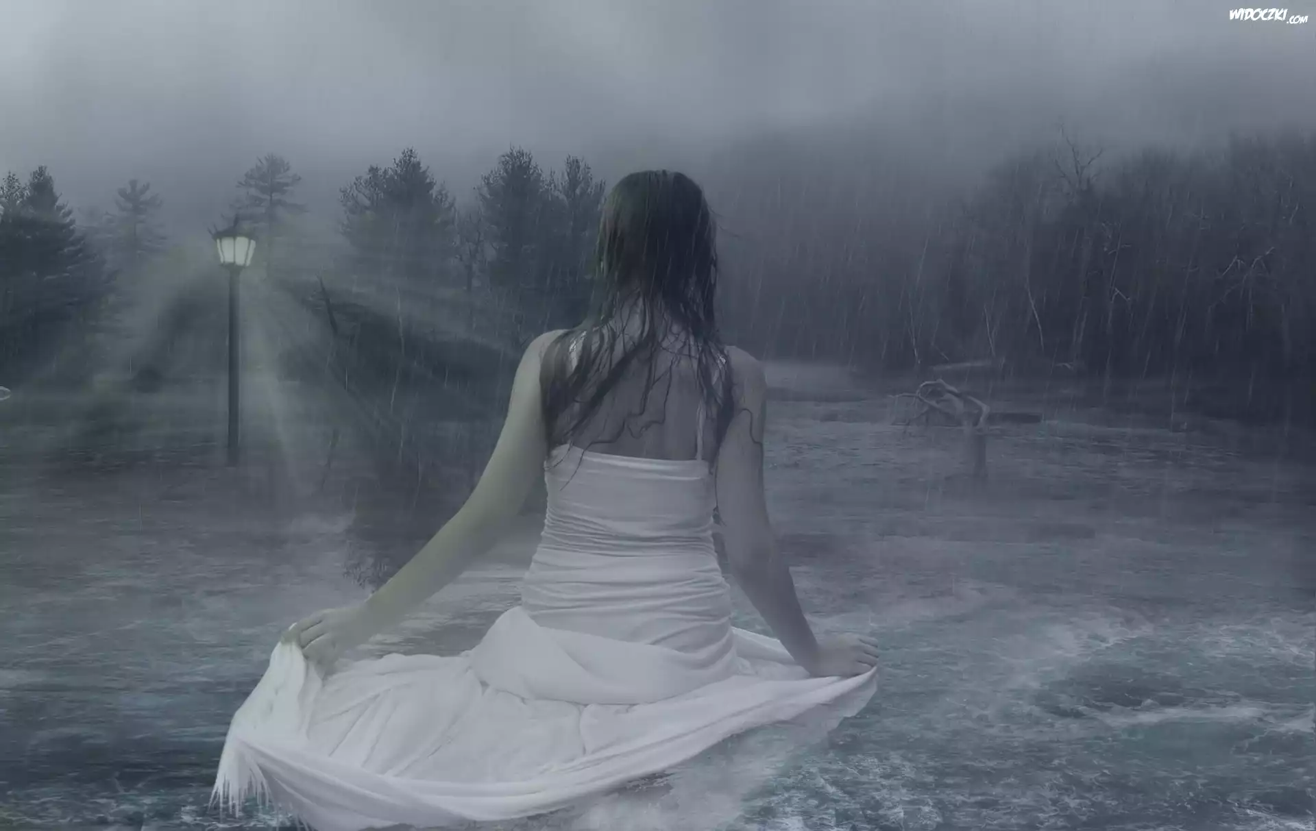 Kobieta, Deszcz, Potop