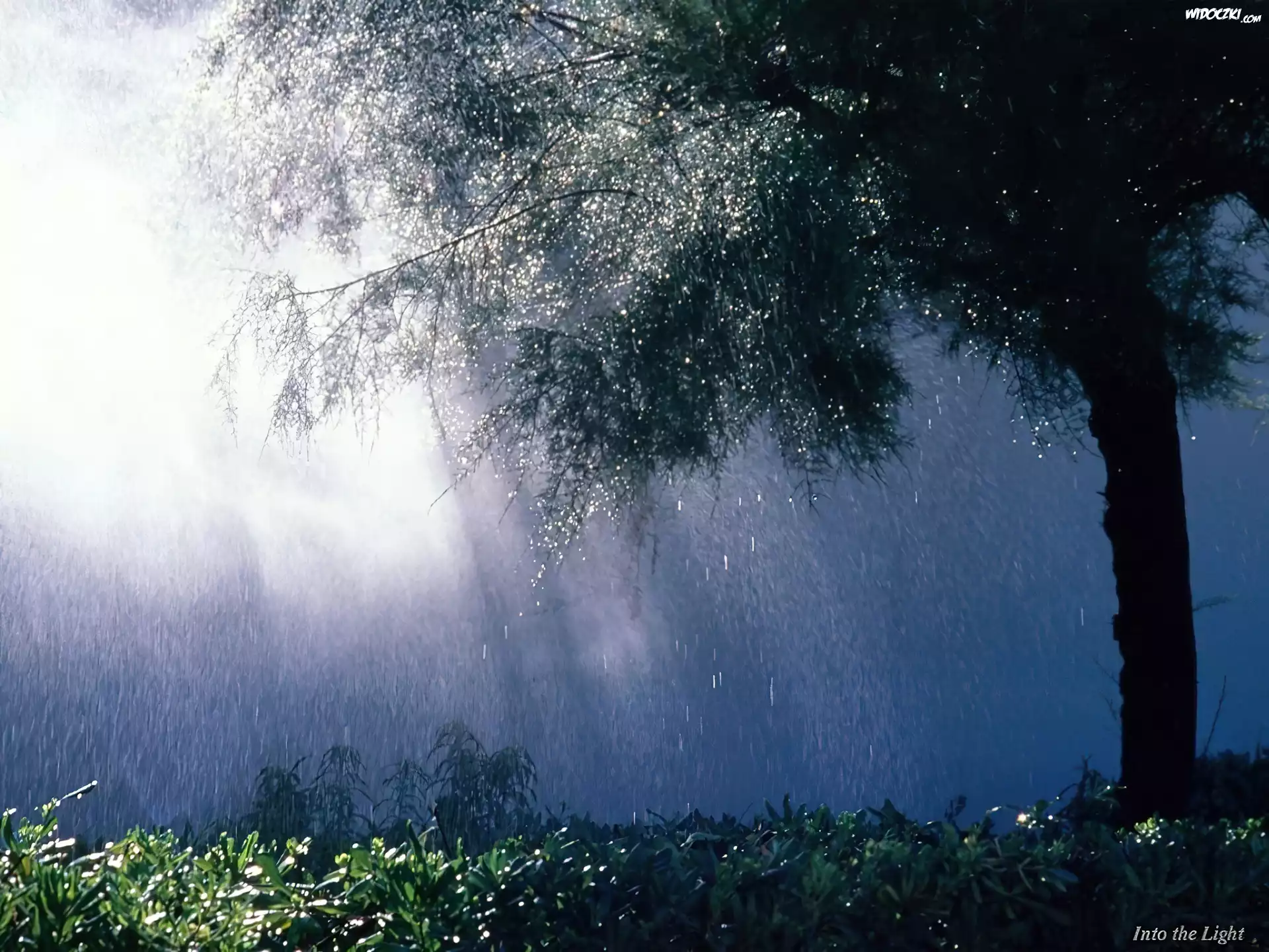 Zdjęcia, Deszcz, Drzewo, Przebijające Światło