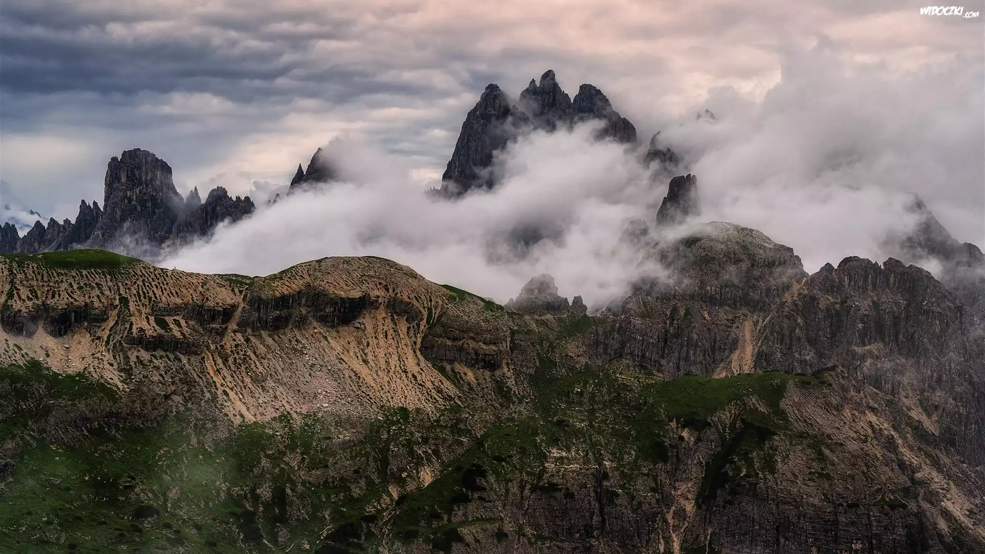 Zdjęcia, Góry, Dolomity, Cadini di Misurina, Mgła, Włochy
