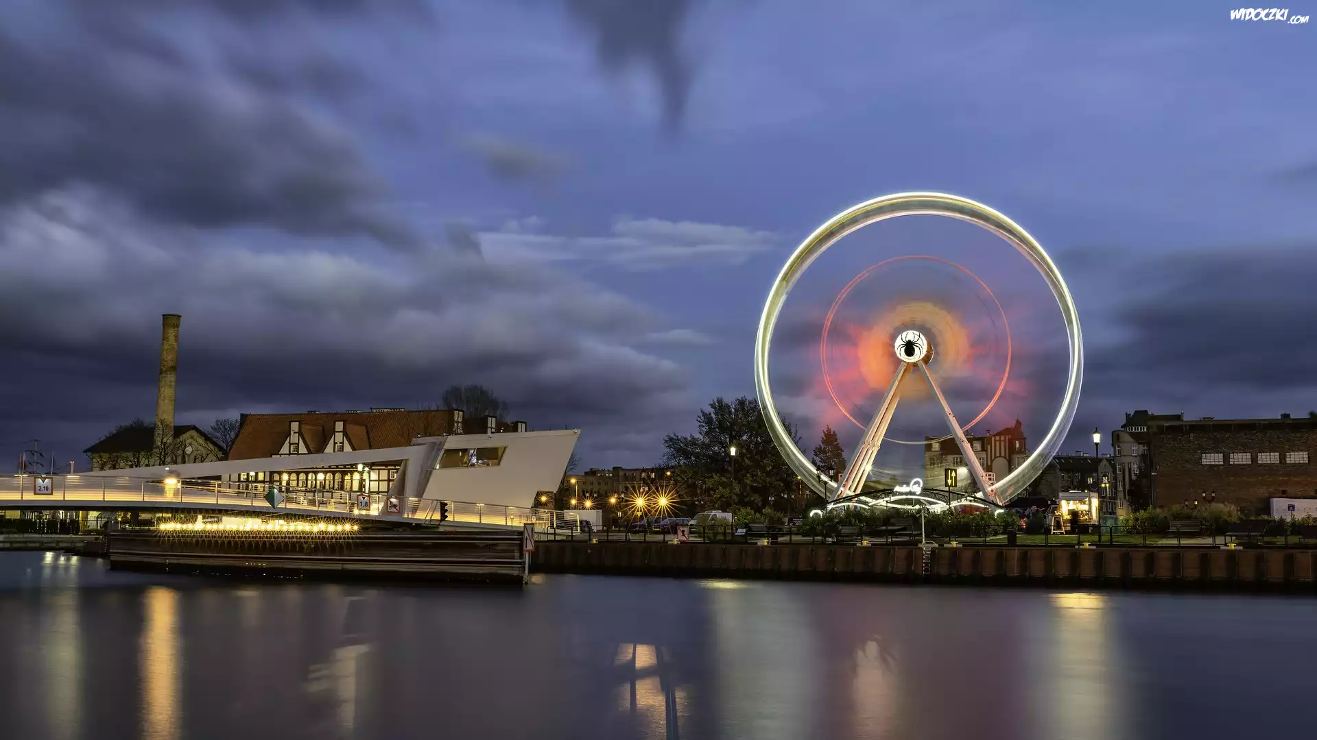 Zdjęcia, Rzeka Motława, Domy, Diabelski młyn, Gdańsk, Polska