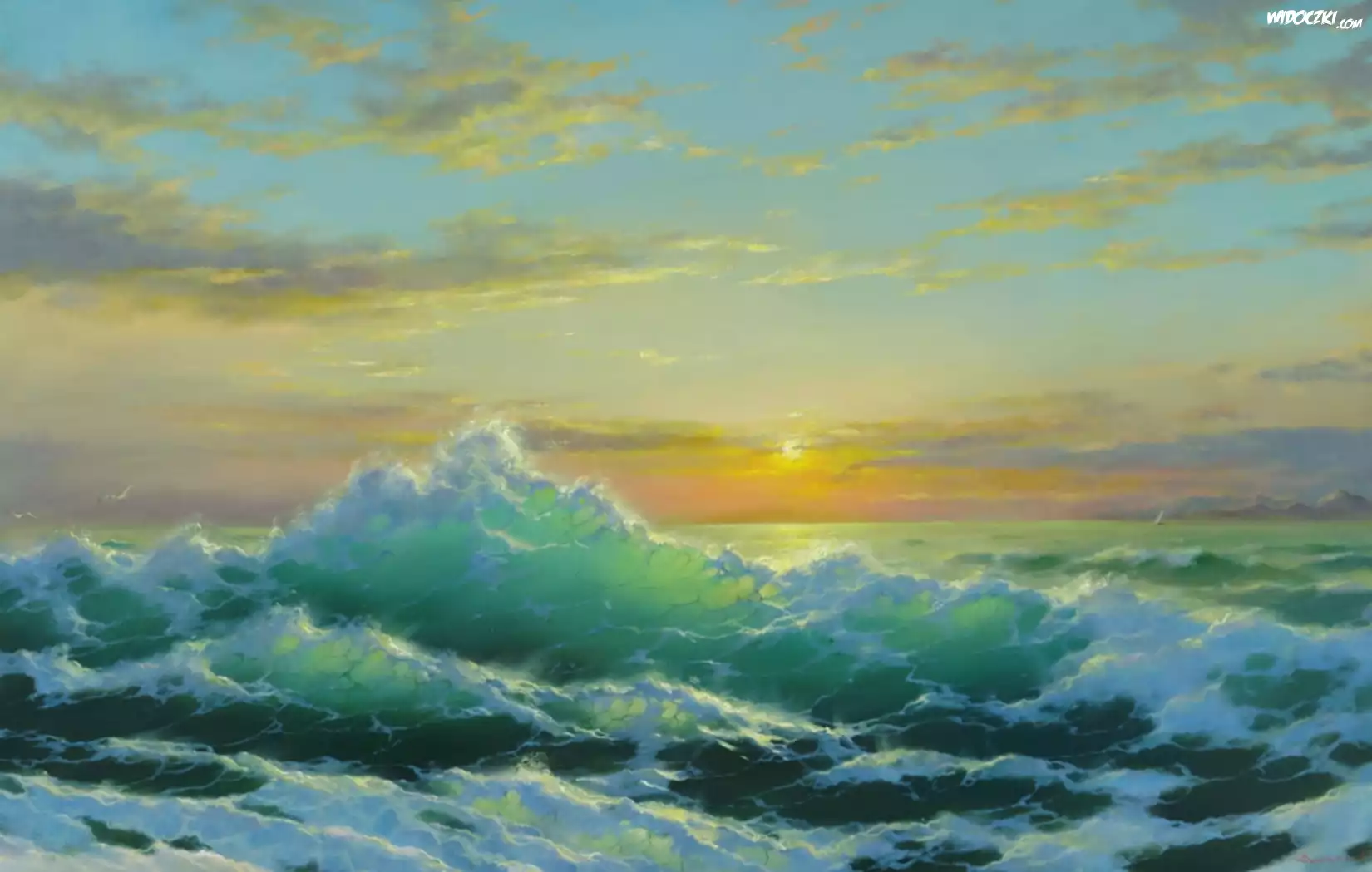 Zdjęcia, George Dimitriev, Malarstwo, Morze, Zachód, Fale, Niebo