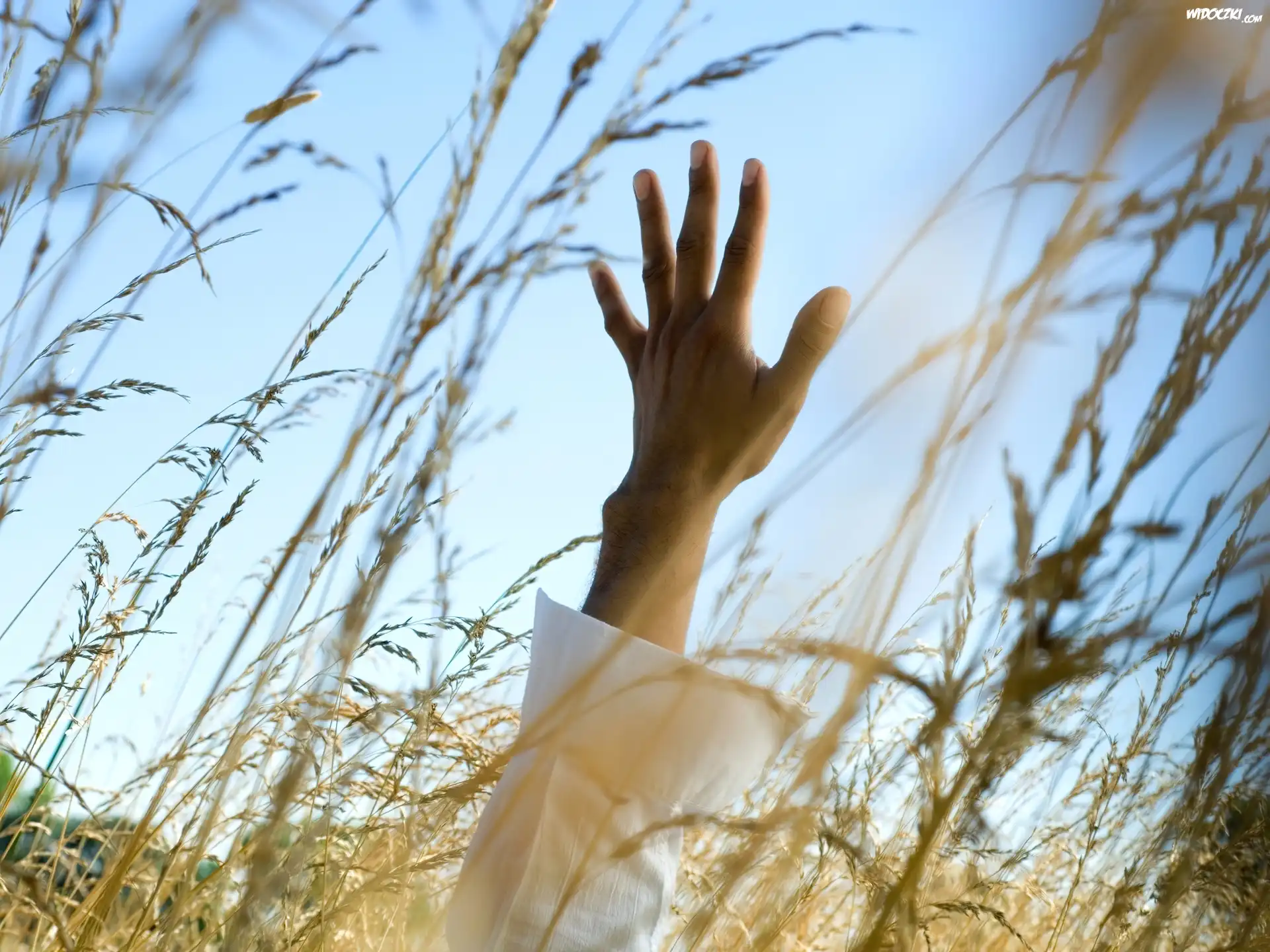 Zdjęcia, Dłoń, Łąka, Krajobraz, Niebo