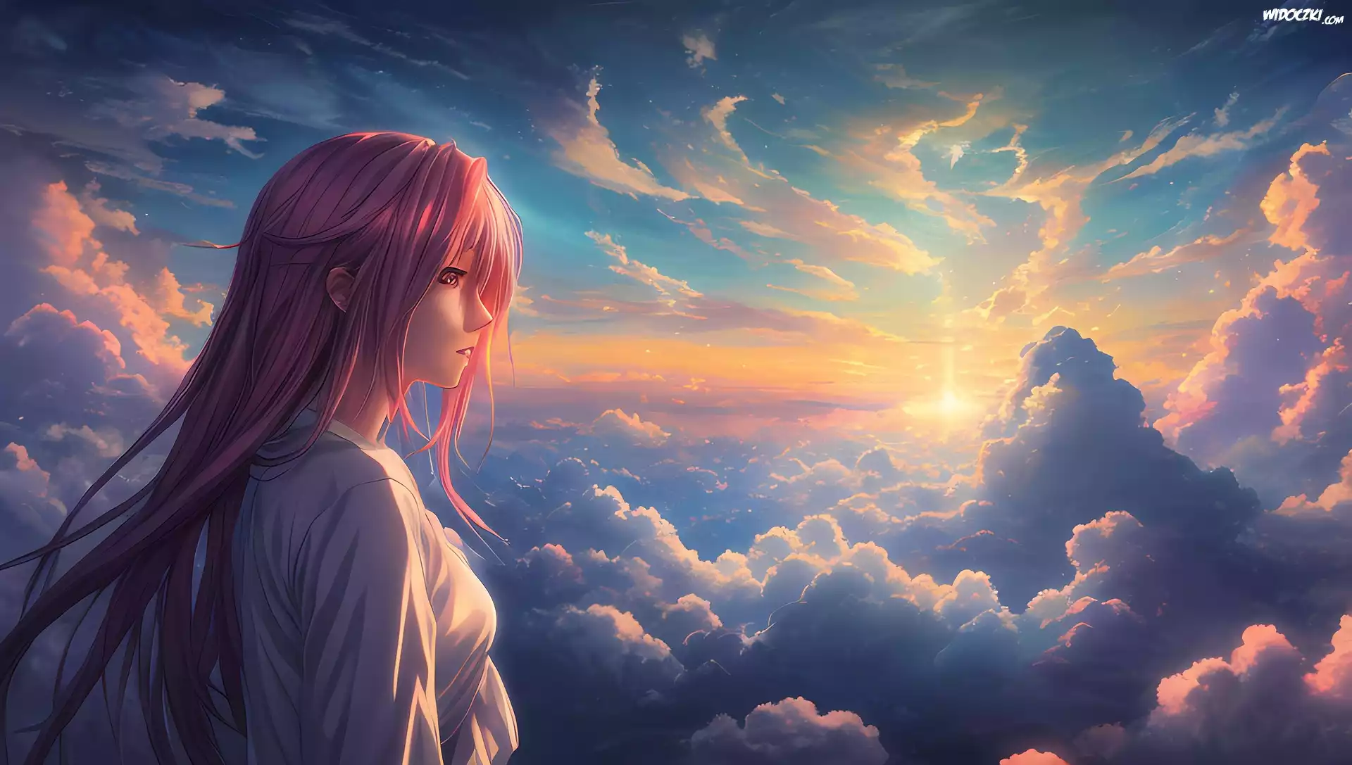Zdjęcia, Dziewczyna, Długie, Włosy, Chmury, Anime