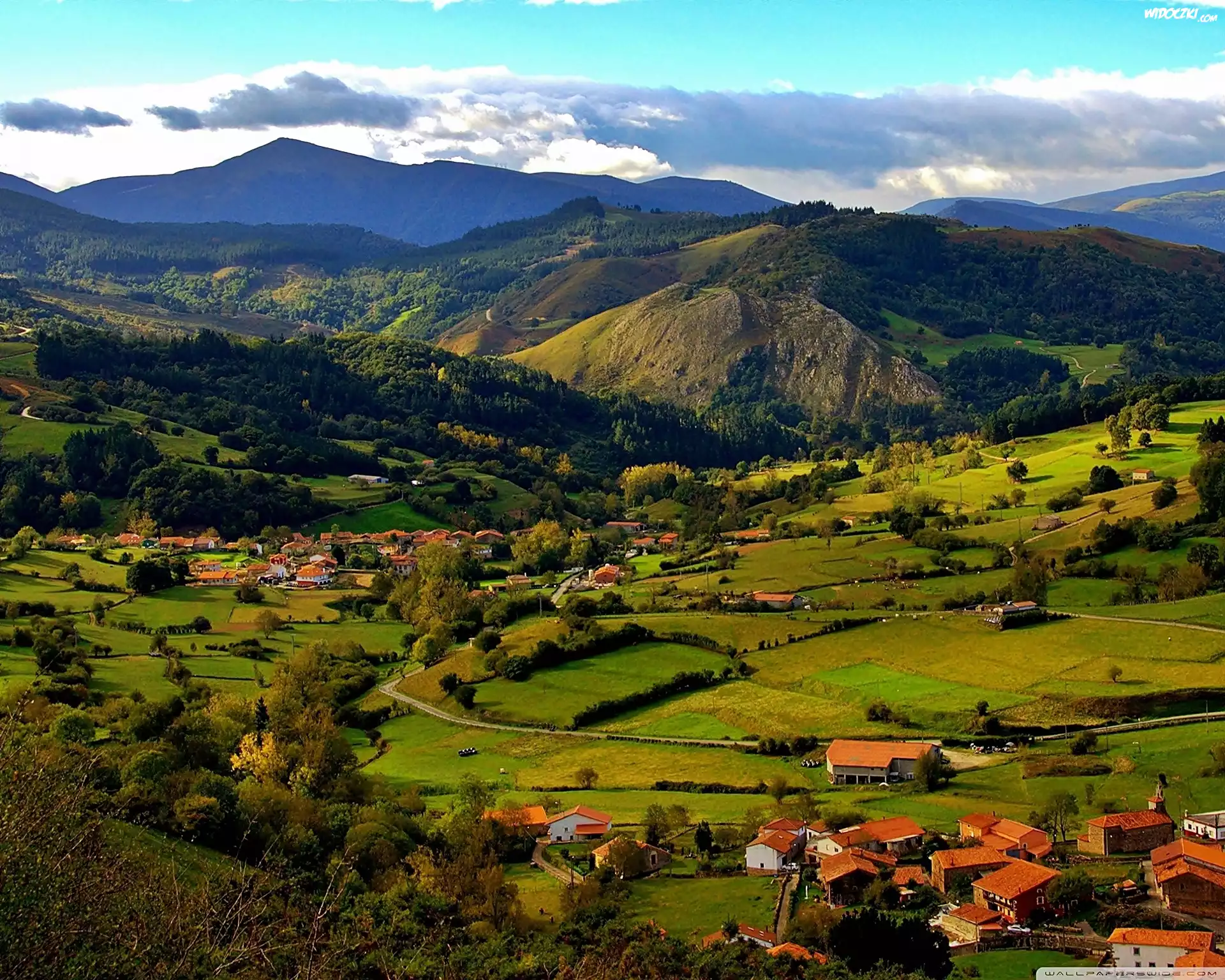 Zdjęcia, Góry, Dolina, Lasy, Łąki, Wioski, Anievas, Kantabria
