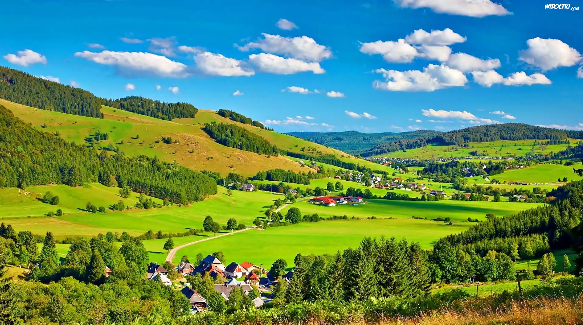 Zdjęcia, Dolina, Łąki, Wioski, Wzgórza
